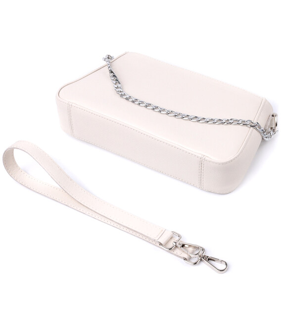 Сумка багет з ланцюжком і знімним ремінцем з натуральної шкіри Shvigel 22835 Бежева
