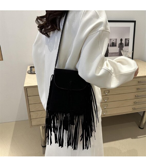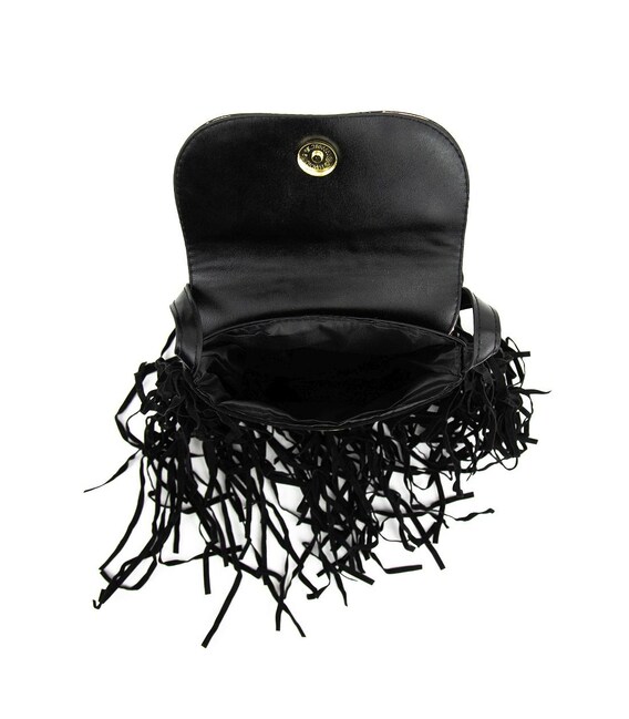 Жіноча стильна сумка з бахромоюОсобливості: розміри 17,5 x 21,5 x 1,5 см.Сумка має одне основне відділення, яке закривається на кнопку.Наплічний довгий ремінець регулюється по довжині.Підкладка: текстильКолір: чорнийКолір фурнітури: золотоЗнайшли цю модель дешевше? Зв'яжіться з нами, і ми запропонуємо Вам найнижчу ціну в Україні, тому що виробник цього товару.