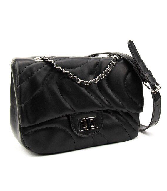 Стильна жіноча сумка кросбоді з екошкіриОсобливості: розміри 21 x 13 x 7 смСумка має одне основне відділення, яке закривається за допомогою клапана.Наплічний довгий ремінець регулюється по довжині, не відстібаєтьсяПідкладка: текстиль Колір: чорний Колір фурнітури: сріблоЗнайшли цю модель дешевше? Зв'яжіться з нами, і ми запропонуємо Вам найнижчу ціну в Україні, тому що виробник цього товару.