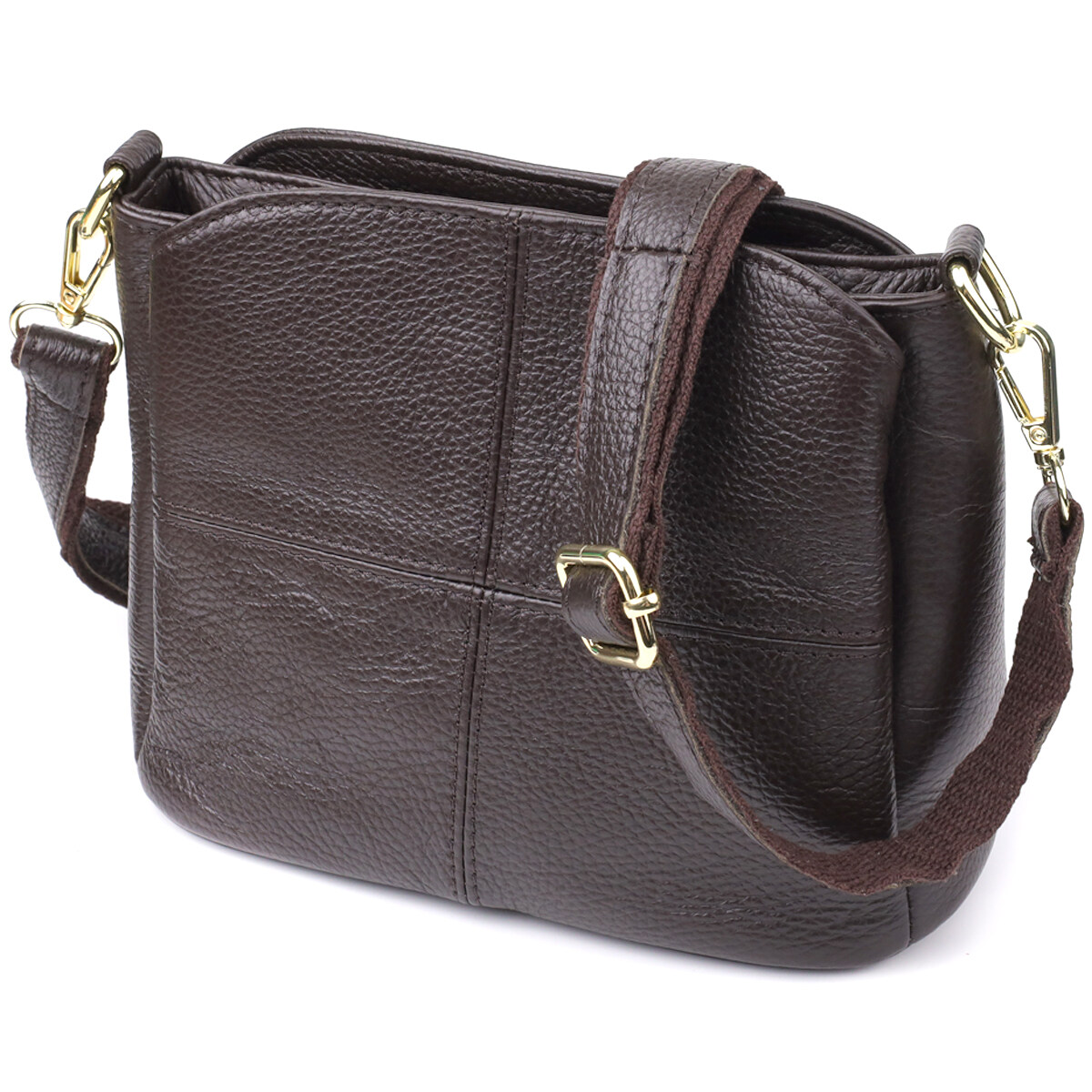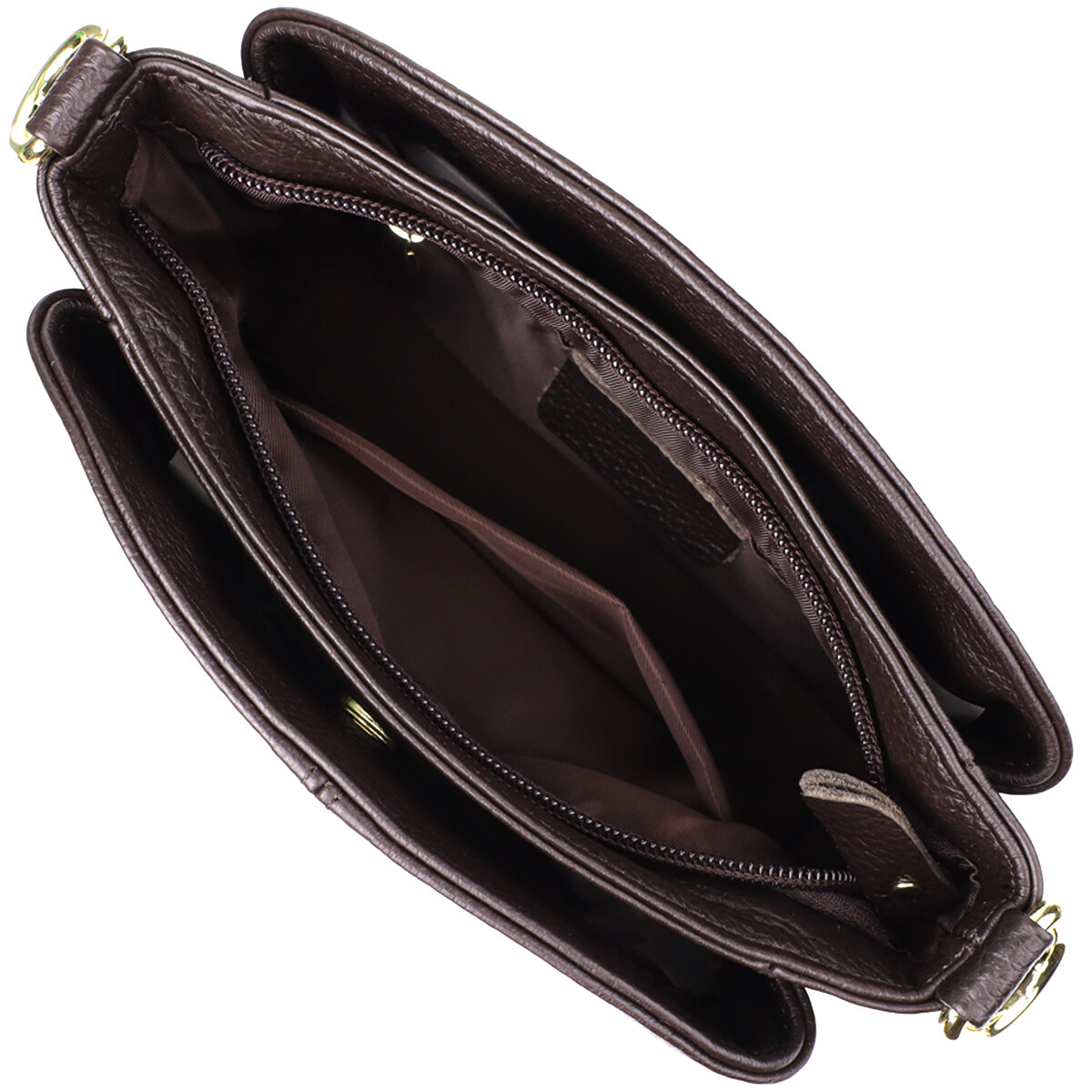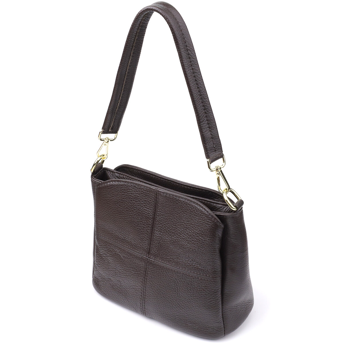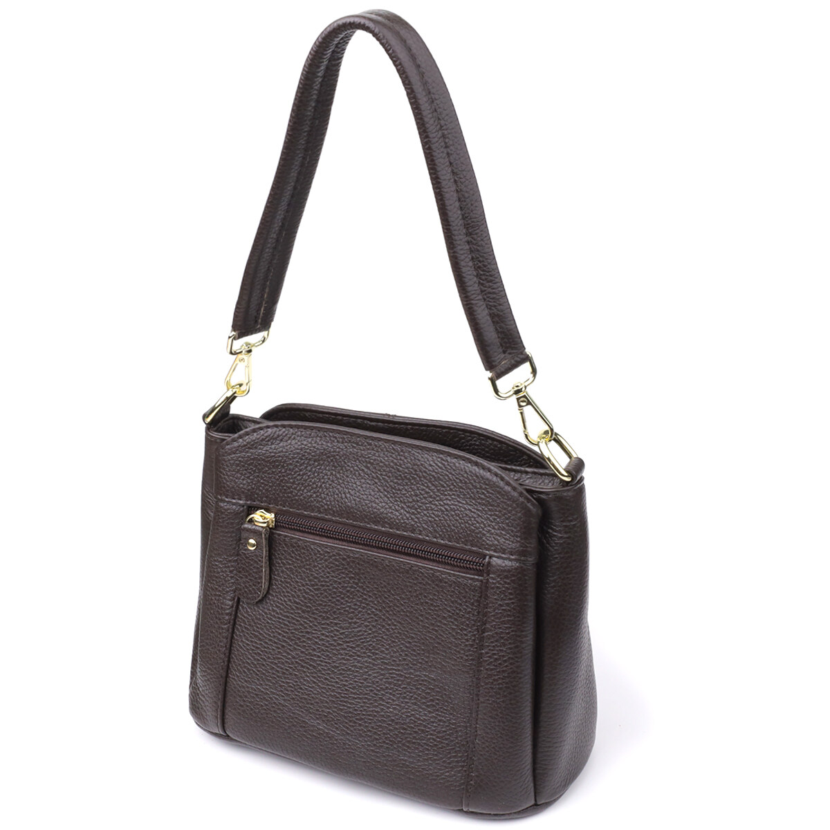 Жіноча шкіряна сумка коричневого кольору – класика, перевірена часом. Ця стильна та практична модель стане надійним супутником на кожен день. Глибокий коричневий колір надає сумці благородний та універсальний характер, легко поєднуючись як з діловим, так і з повсякденним одягом. Виконана з натуральної шкіри, вона відрізняється високою зносостійкістю та зберігає презентабельний вигляд протягом багатьох сезонів.