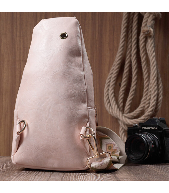 Жіноча слінг сумка через плече з екошкіри Vintage 22750 Рожевий