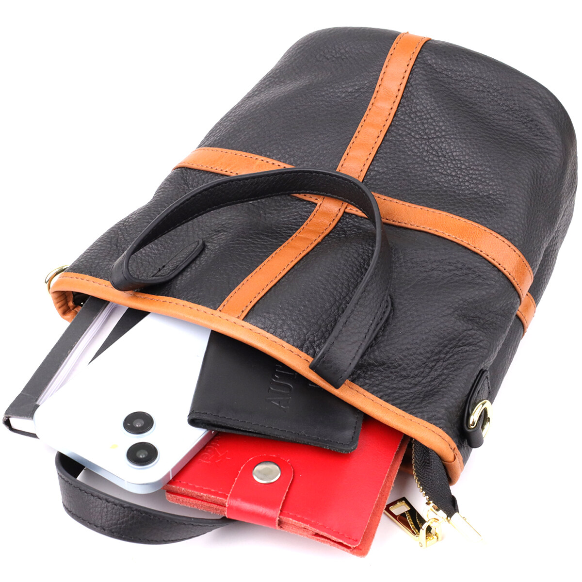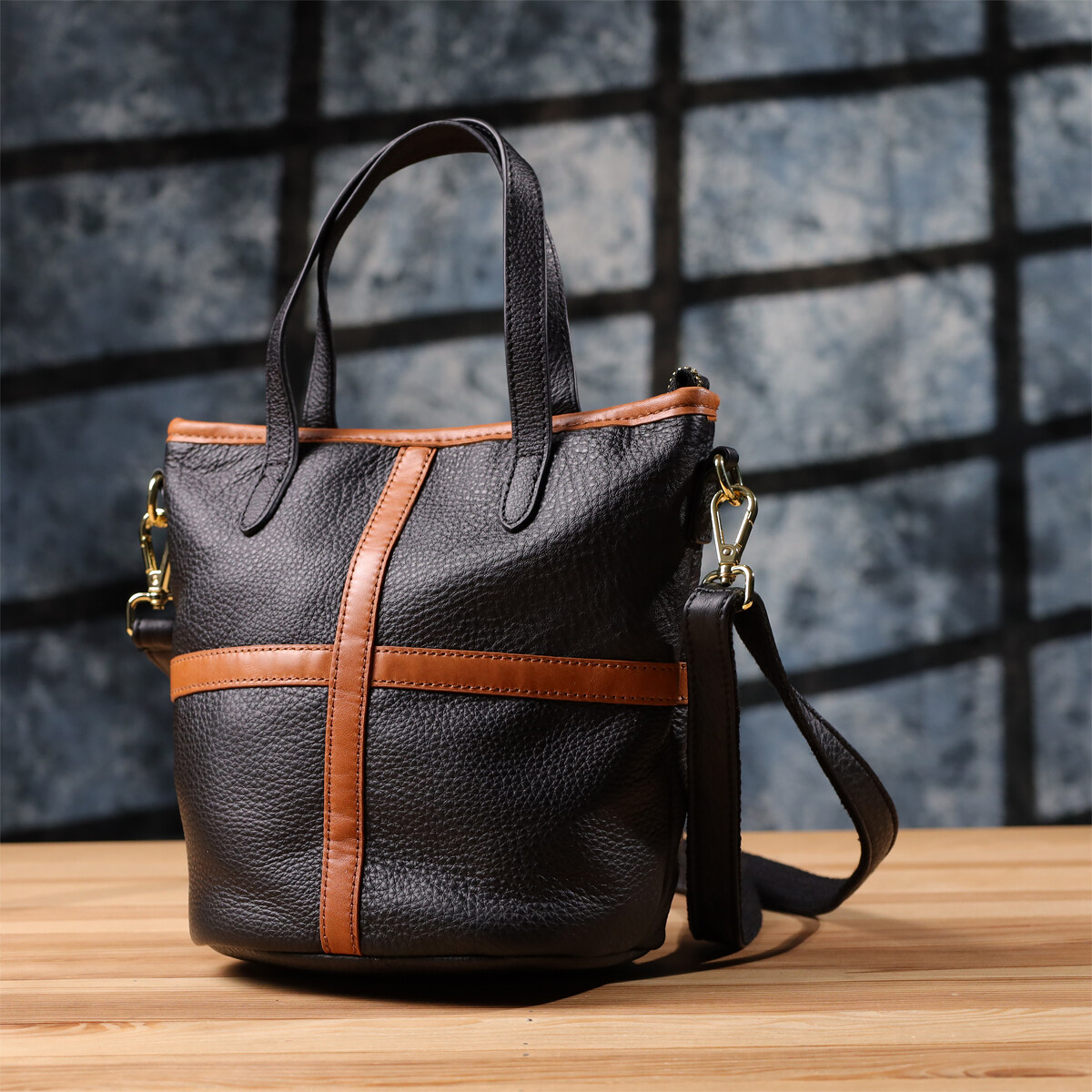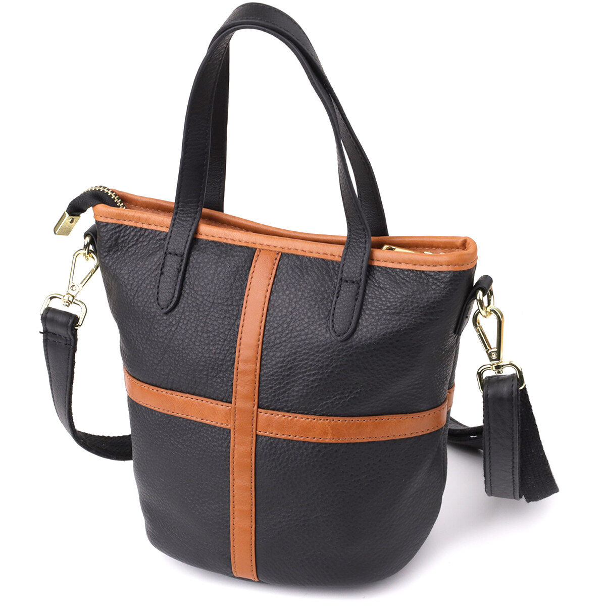 Шкіряна сумка у формі трапеції – це ідеальне поєднання суворої елегантності, продуманої функціональності та класичної форми.