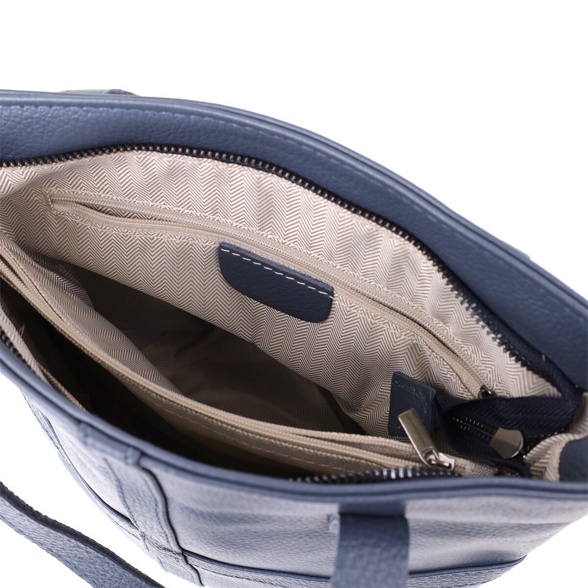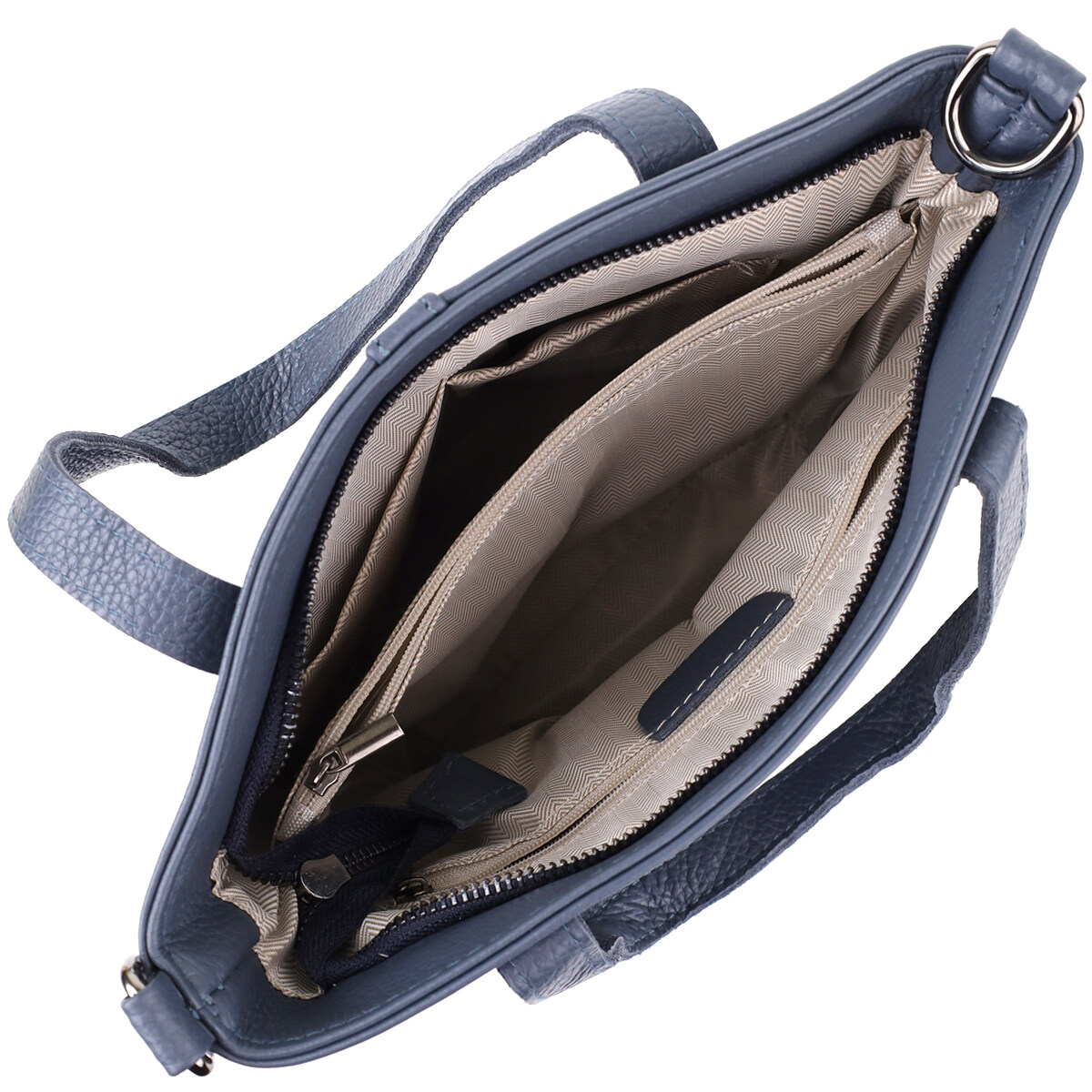 Сумка закривається на блискавку і має основне відділення із зручною організацією: потайну кишеню на блискавці, кишеню-перегородку на блискавці та відкриту кишеню для дрібниць. Тверде дно допомагає сумці зберігати форму, а фурнітура кольору темного срібла наголошує на благородному характері моделі.