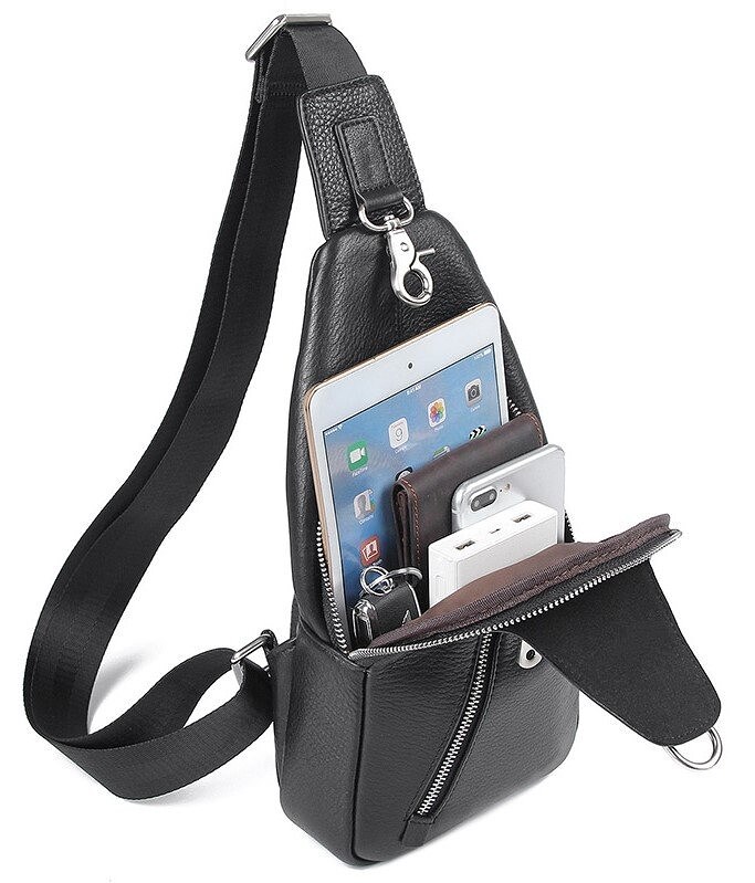 Модель має основне відділення на блискавці з потайною кишенею всередині, кишеню відкритого типу та вбудовану діагональну кишеню на блискавці на лицьовій стороні. Такий набір відділень дозволяє зручно розмістити телефон, документи, гаманець, ключі та інші необхідні дрібниці.