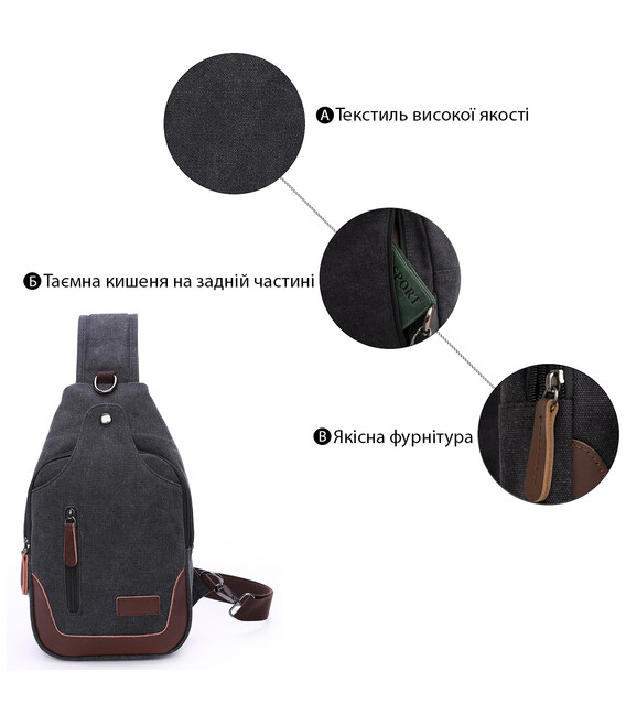 Сумка через плече текстильна Vintage 20077 Чорна