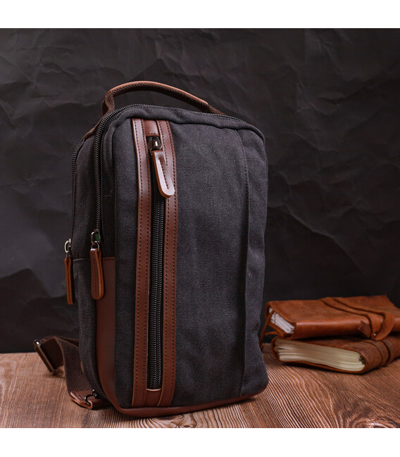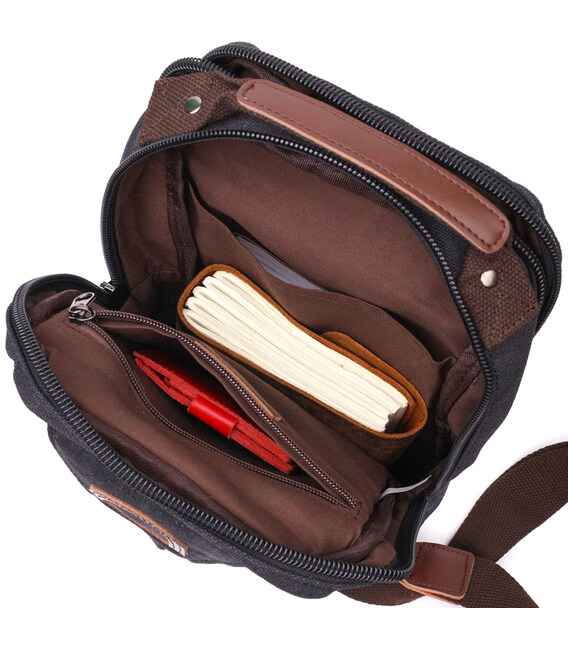 Детальніше Оригінальна чоловіча сумка через плече із щільного текстилю Vintage 22192 Чорний