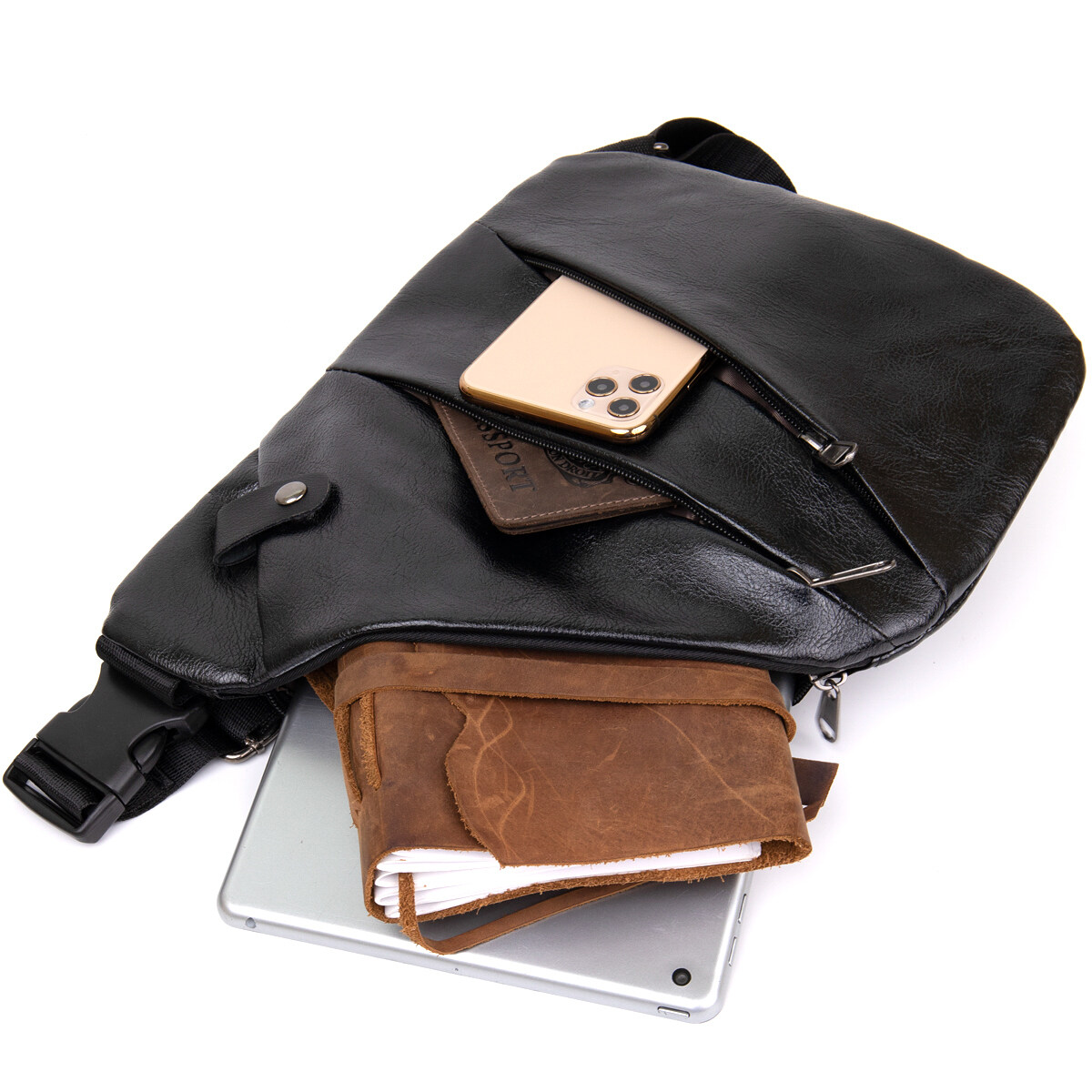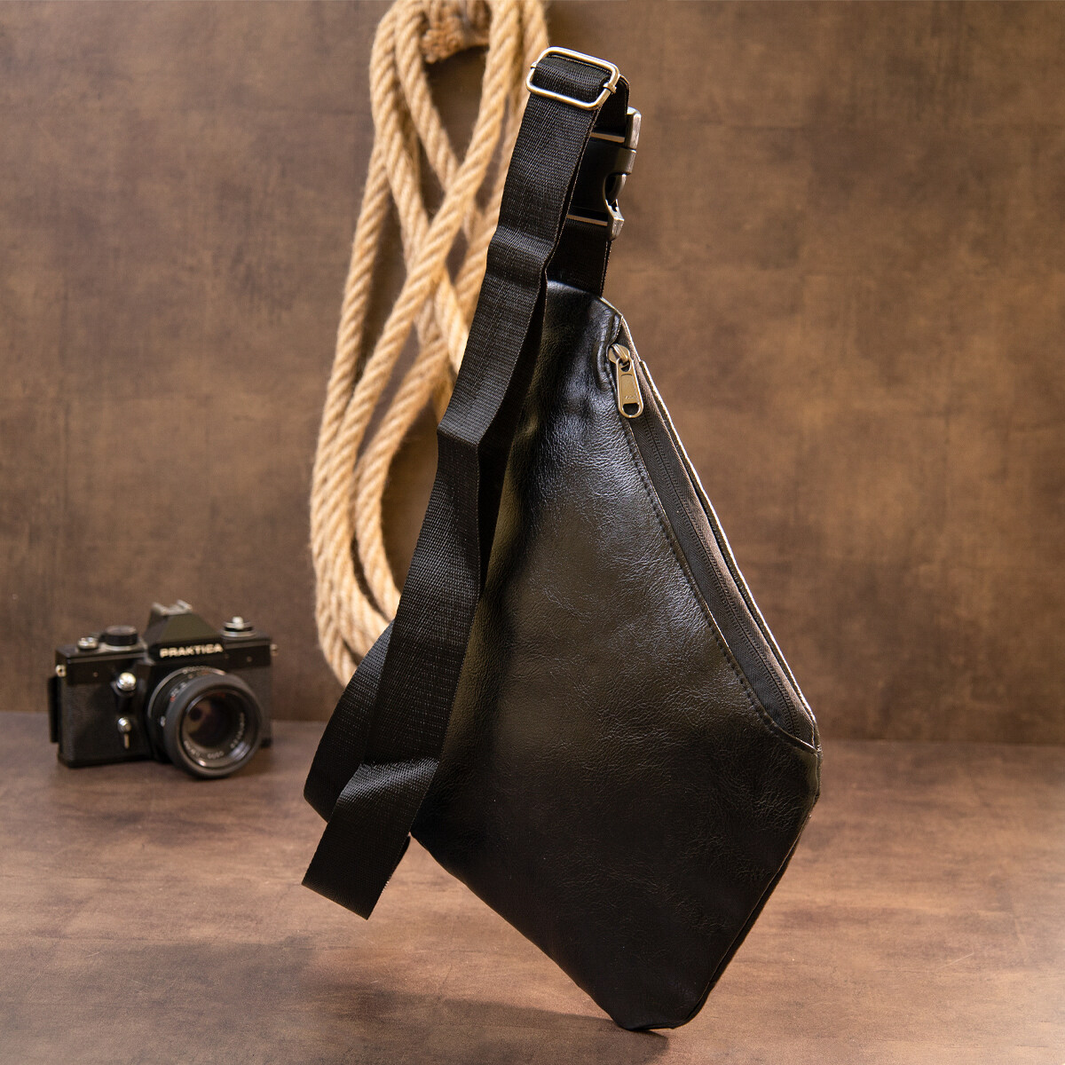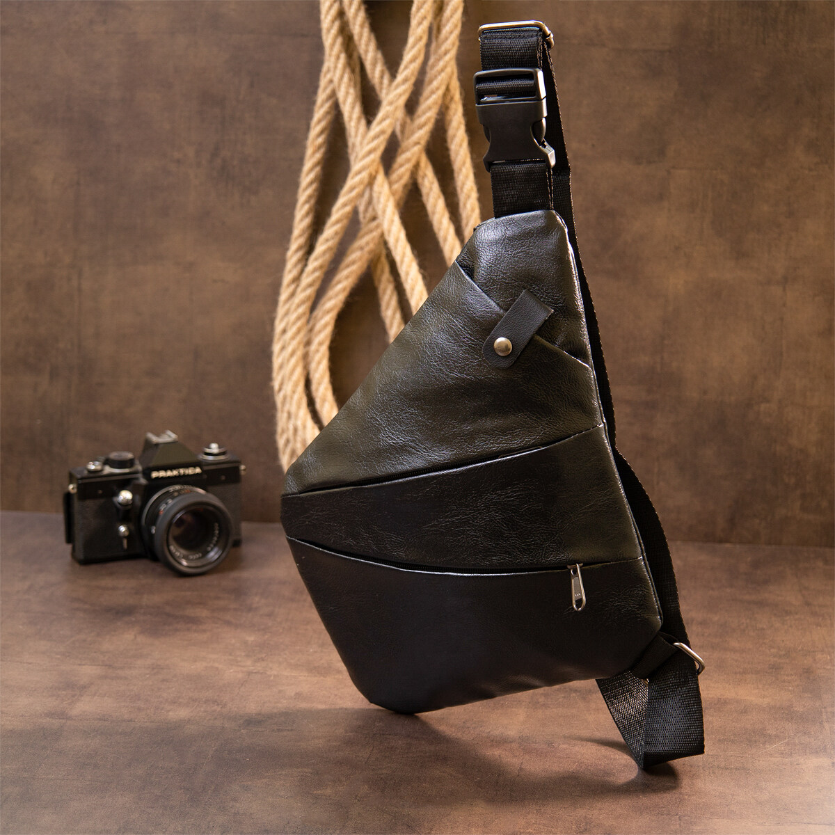 Дуже компактна сумка з якісного шкірозамінника класичного чорного кольору, який підходить під будь-яке взуття і гардероб. Ідеальна текстильна сумка для щоденного використання і поїздок. Сумка тонка і дуже ергономічна. Виріб продумано з урахуванням всіх тенденцій під практичного сучасного чоловіка. З сумкою слінг всі ваші особисті речі будуть в безпеці і перед вашими очима. Попередницею сумки слінг є сумка кобура. Саме вона була створена як сумка чохол для носіння зброї. Функціонал і розташування кишень даної сумки робить більш легким доступ до ваших особистих речей. Також сумка з легкістю може бути захована під плечем, що забезпечить більший захист від злодіїв і ваші цінні речі будуть перед вашими очима і в повному порядку. Сумка-слінг стане прекрасним подарунком для ваших близьких.