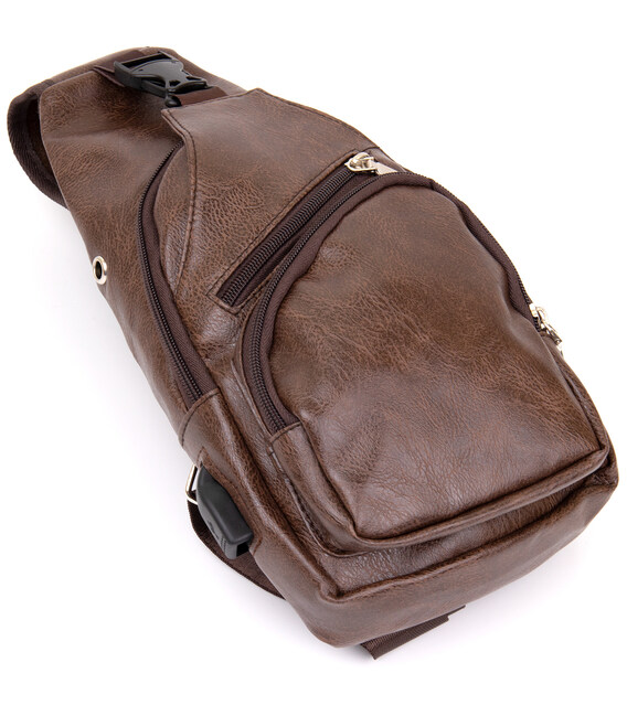 Чоловіча сумка крос боді з екошкіри для документів та міста Vintage 20572 Коричнева