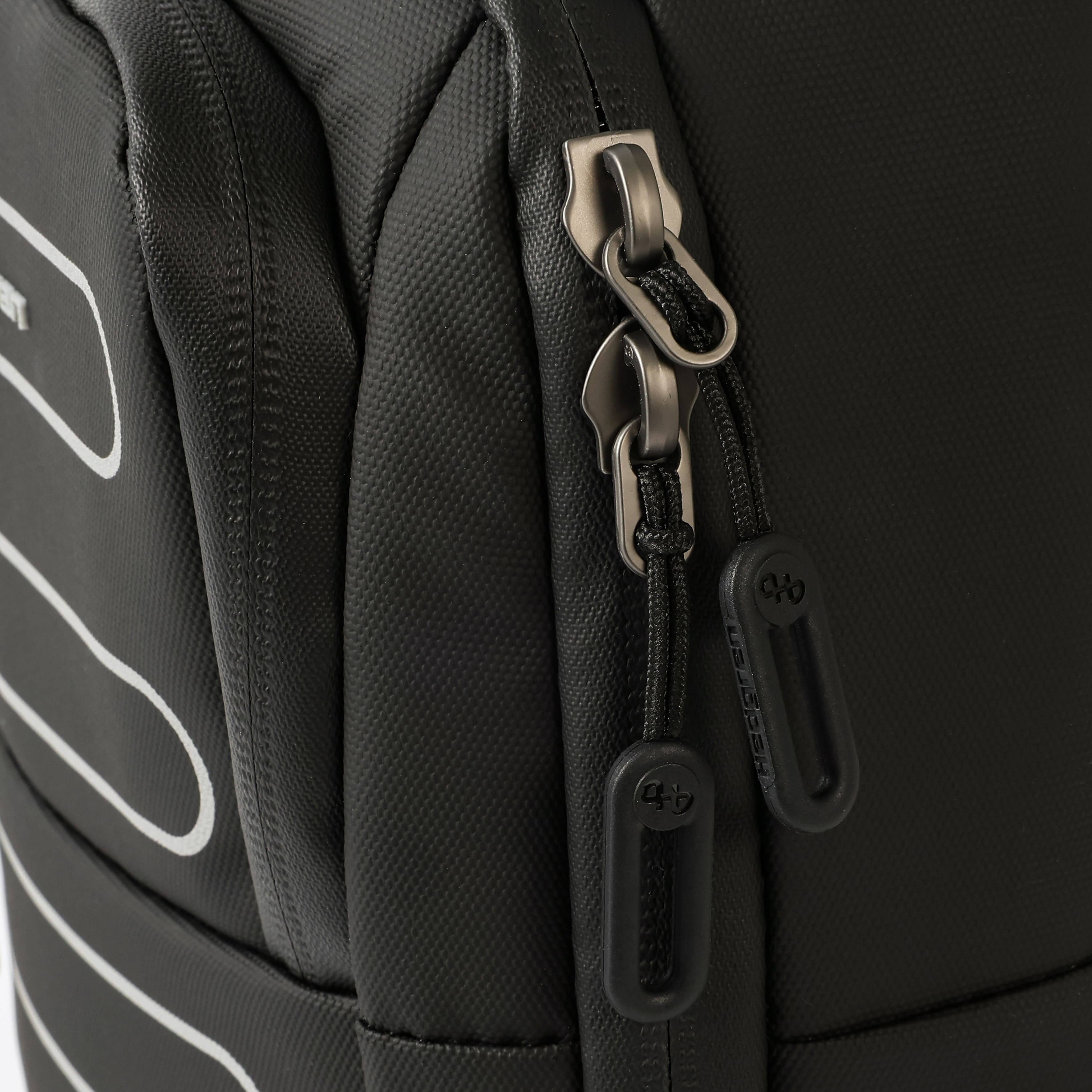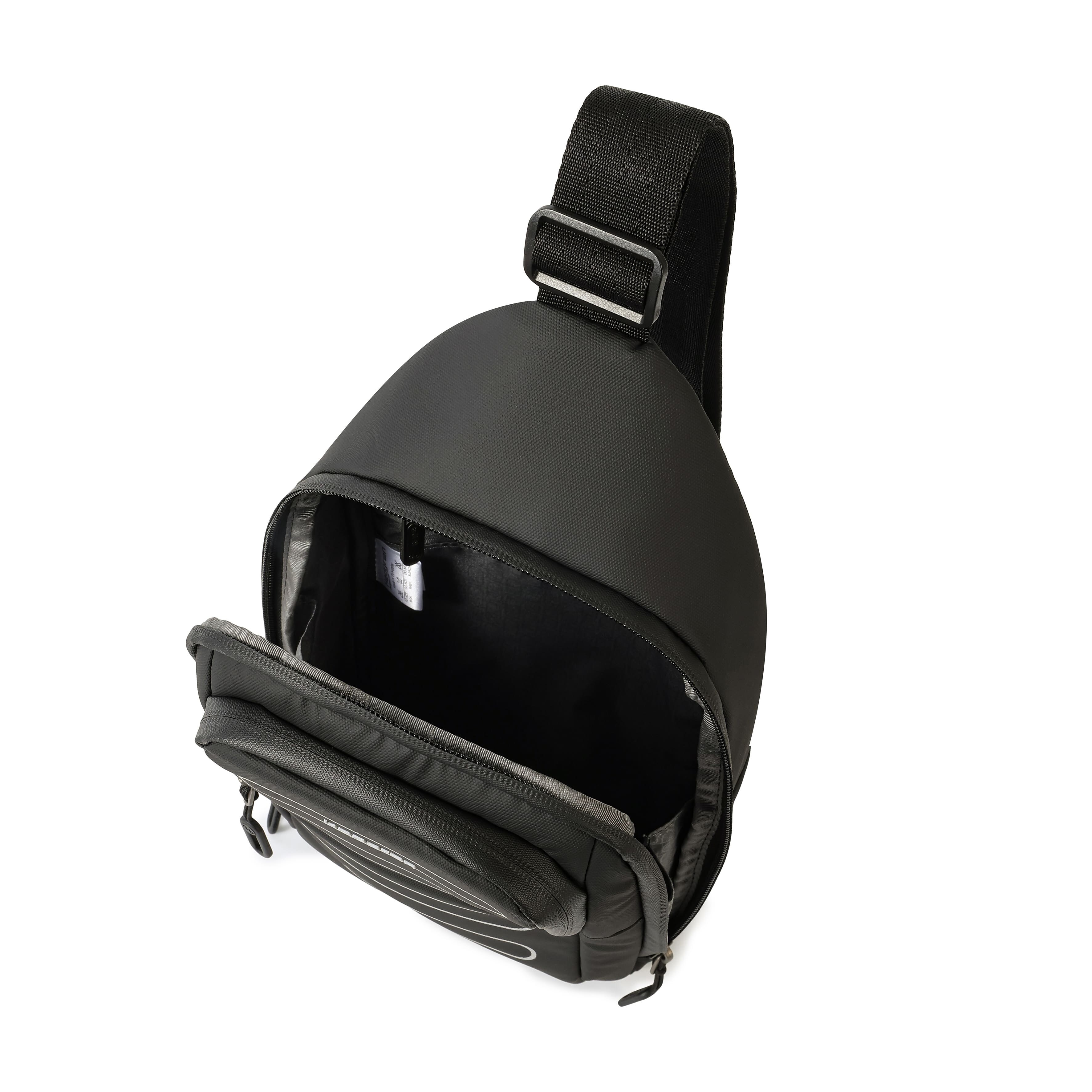 Вертикальна сумка через плече, підійде як і для щоденного використання, так і для подорожей, ідеальний розмір, для будь-якого випадку. Зовнішня та внутрішня тканини виготовлені з 100% перероблених та сертифікованих матеріалів RPET (перероблені пластикові пляшки) зовнішня тканина: поліестер 600D RPET, внутрішня підкладка: поліестер RPET 150D. Має два основних відділи, де розташовані: додаткова кишеня на блискавці з RFID-захистом, відділ для смартфону, гачок для ключів, відділення для міні-планшету. Зовнішня кишеня для дрібниць першої необхідності, також присутні світловідбиваючи елементи. Безпечна задня кишеня з поглибленим отвором на блискавці, щільно прилягає до тіла.