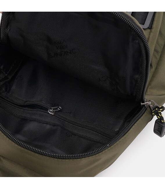 Чоловічий рюкзак через плече має 1 відділення на блискавці, усередині 1 кишеню на блискавці. З лицьового боку є 2 кишені на блискавці. Текстиль підкладка. Незнімні текстильні лямки регулюються по довжині.