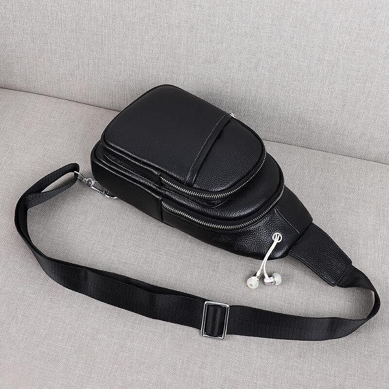 Сумка-слінг чоловіча чорна через плече з натуральної шкіри TIDING BAG A25F-515-1A