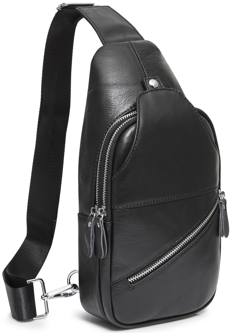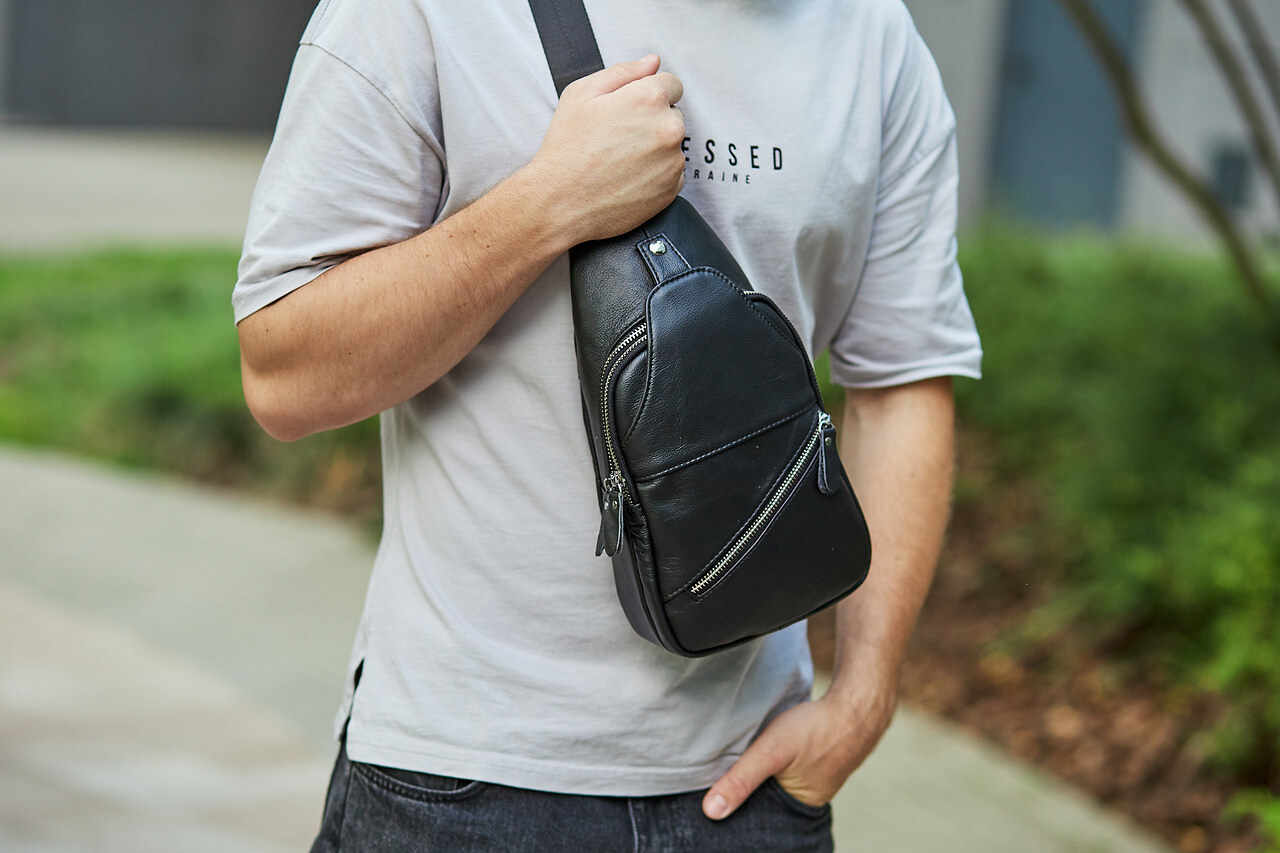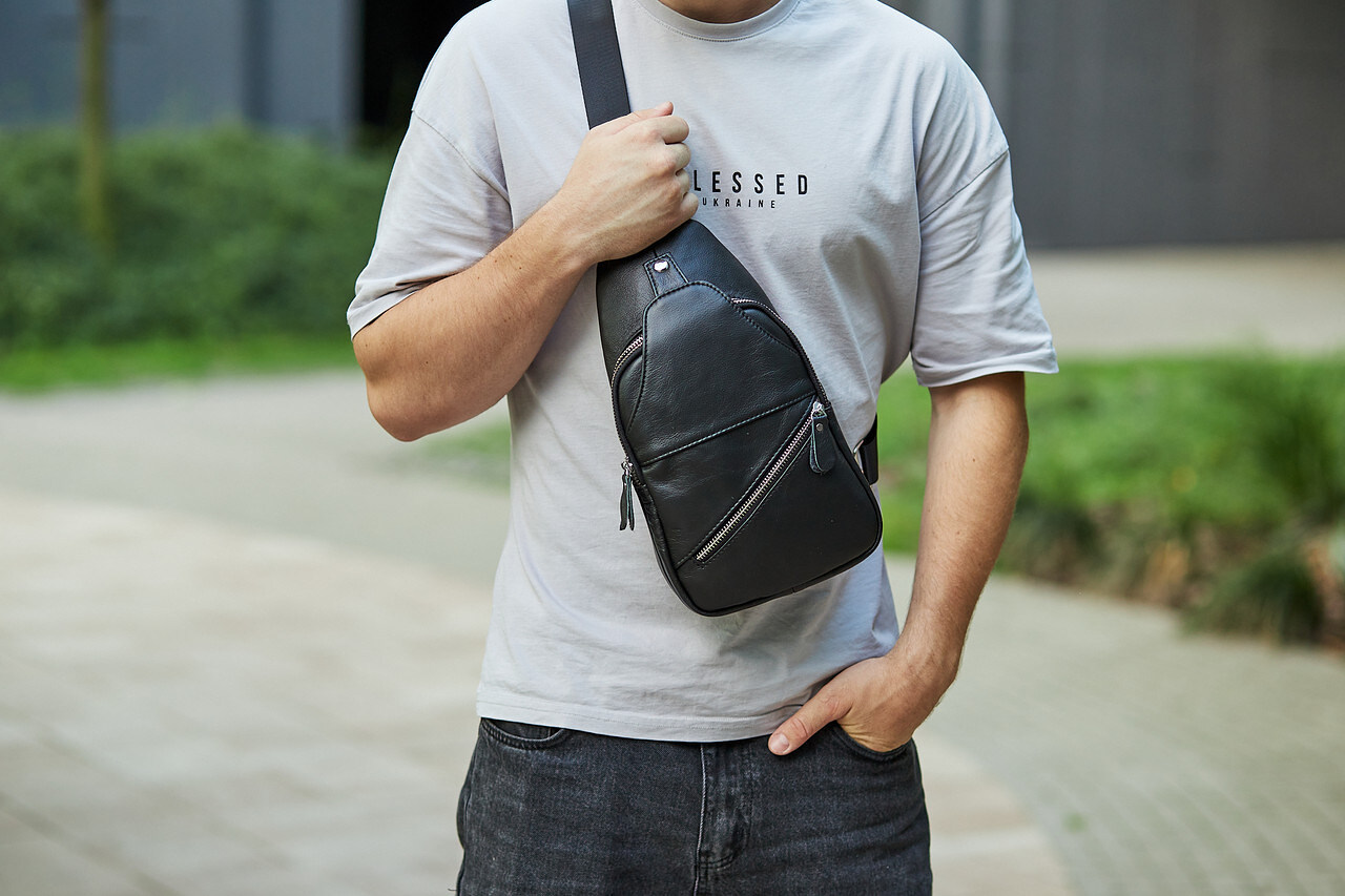 Чоловіча сумка-слінг шкіряна чорна Tiding Bag 7579