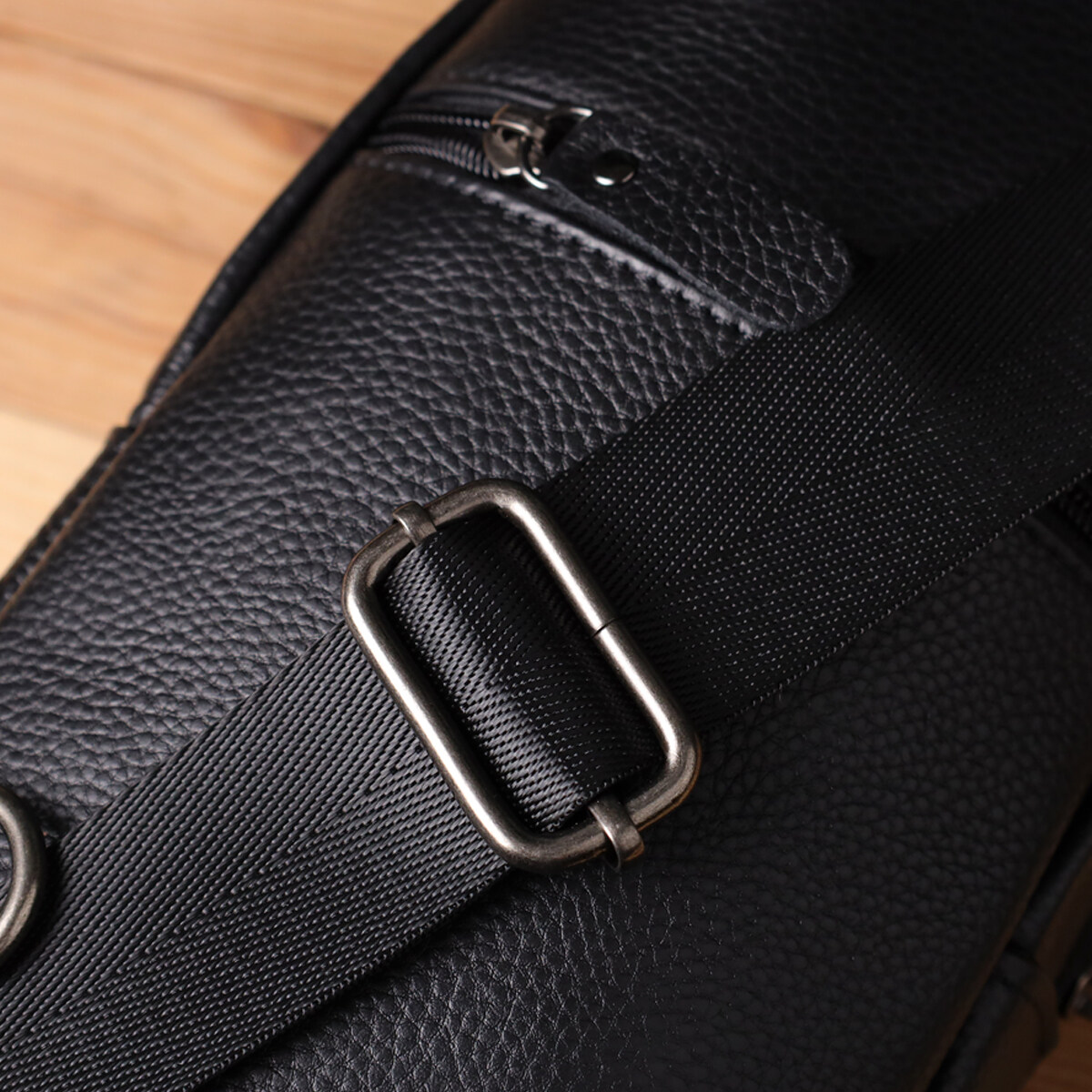 Шкіряна сумка через плече – практичний та стильний аксесуар на кожен день. Виготовлена із міцної зернистої шкіри флотар, стійка до зносу та деформацій. Зручна організація внутрішнього простору: містке основне відділення на блискавці, потайна кишеня та додаткові відділення для дрібниць. На лицьовій стороні — накладна та вбудована горизонтальна кишені на блискавці, на тильній — ще одна кишеня для швидкого доступу. Регульований ремень дозволяє комфортно носити сумку через плече, звільняючи руки. Відмінний вибір для тих, хто цінує якість та зручність у повсякденних аксесуарах.