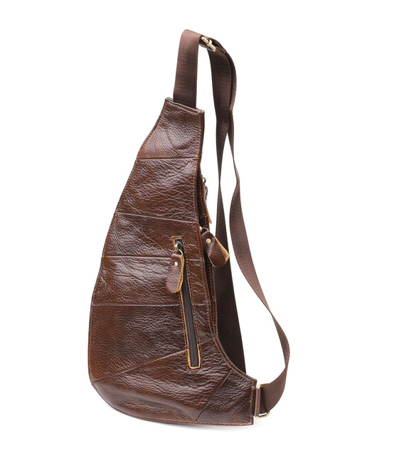 Практична та стильна шкіряна сумка через плече, створена спеціально для чоловіків, які цінують зручність та функціональність. Модель виконана з якісної натуральної шкіри та оснащена продуманою системою зберігання: одне основне відділення із застібкою-блискавкою забезпечує надійне зберігання великих речей, а на лицьовій стороні розташовані три кишені на блискавках для швидкого доступу до дрібних предметів – телефону, ключів, гаманця.
