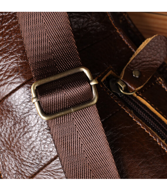 Сумка для чоловіків з великою кількістю кишень із натуральної шкіри Vintage 22956 Коричневий