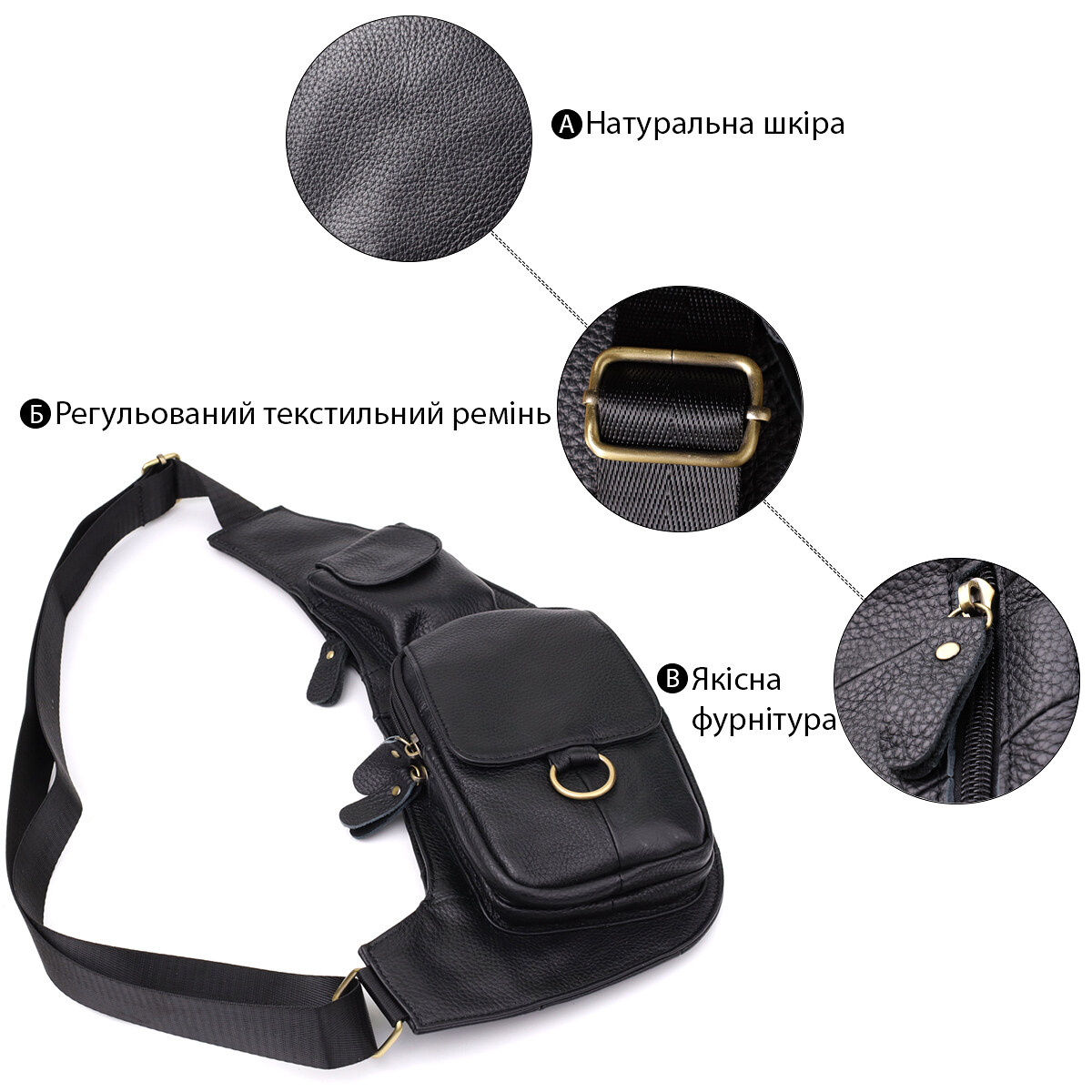 Напівкругла чоловіча шкіряна сумка через плече — практичний та стильний аксесуар для сучасного чоловіка, який цінує якість та зручність.