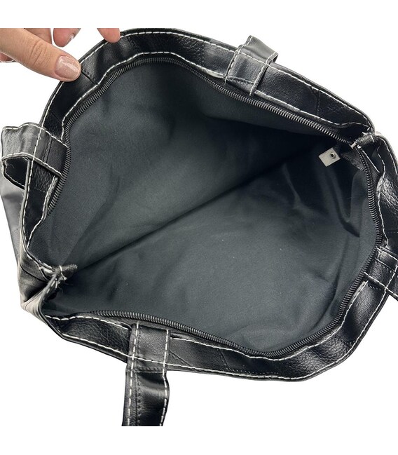 Велика жіноча сумка з екошкіри Lilly P2-9071Особливості: розміри 37 x 35,6 x 1,5 см. Сумка має одне основне відділення, яке закривається на блискавку.Підкладка: текстиль Колір: чорний Колір фурнітури: темне сріблоЗнайшли цю модель дешевше? Зв'яжіться з нами, і ми запропонуємо Вам найнижчу ціну в Україні, тому що виробник цього товару.
