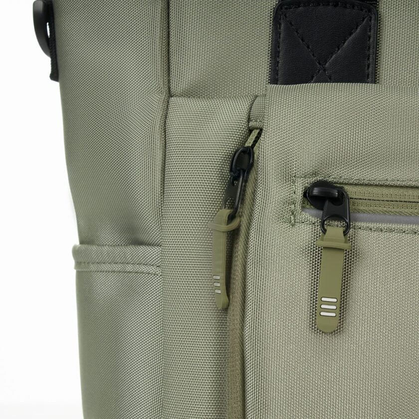 Внутрішній простір Ravenna організований так, щоб все було поруч. Основне відділення з кишенями-органайзерами вміщує документи, ґаджети й особисті речі. Зовнішні відсіки роблять сумку ще зручнішою: передні кишені на блискавці ідеальні для різних дрібничок, бокові — для пляшки або парасолі, а задня кишеня забезпечує швидкий доступ до найважливішого. Світла підкладка всередині полегшує пошук речей і допомагає підтримувати лад.