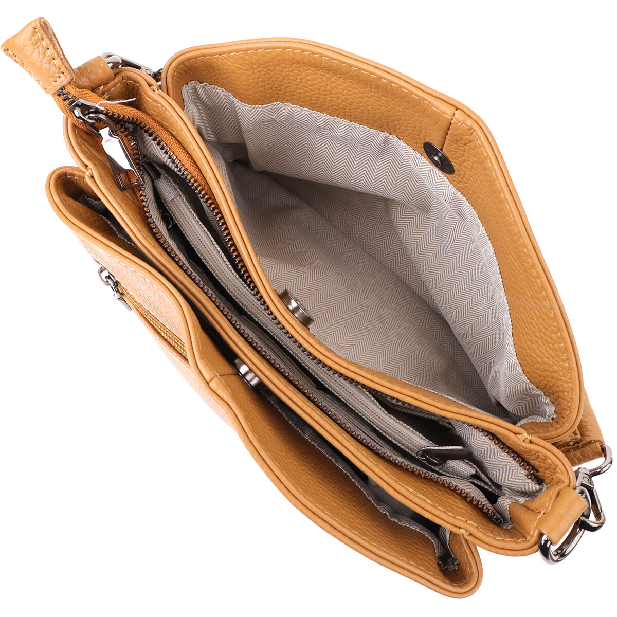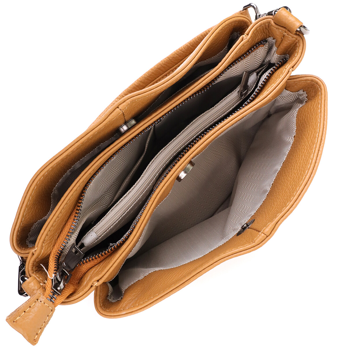 Сумка оснащена одним основним відділенням, яке закривається на блискавку. Усередині передбачено чотири кишені: дві на блискавках для надійного зберігання документів, телефону або гаманця, і два відкриті типи для дрібниць, до яких потрібен швидкий доступ.
