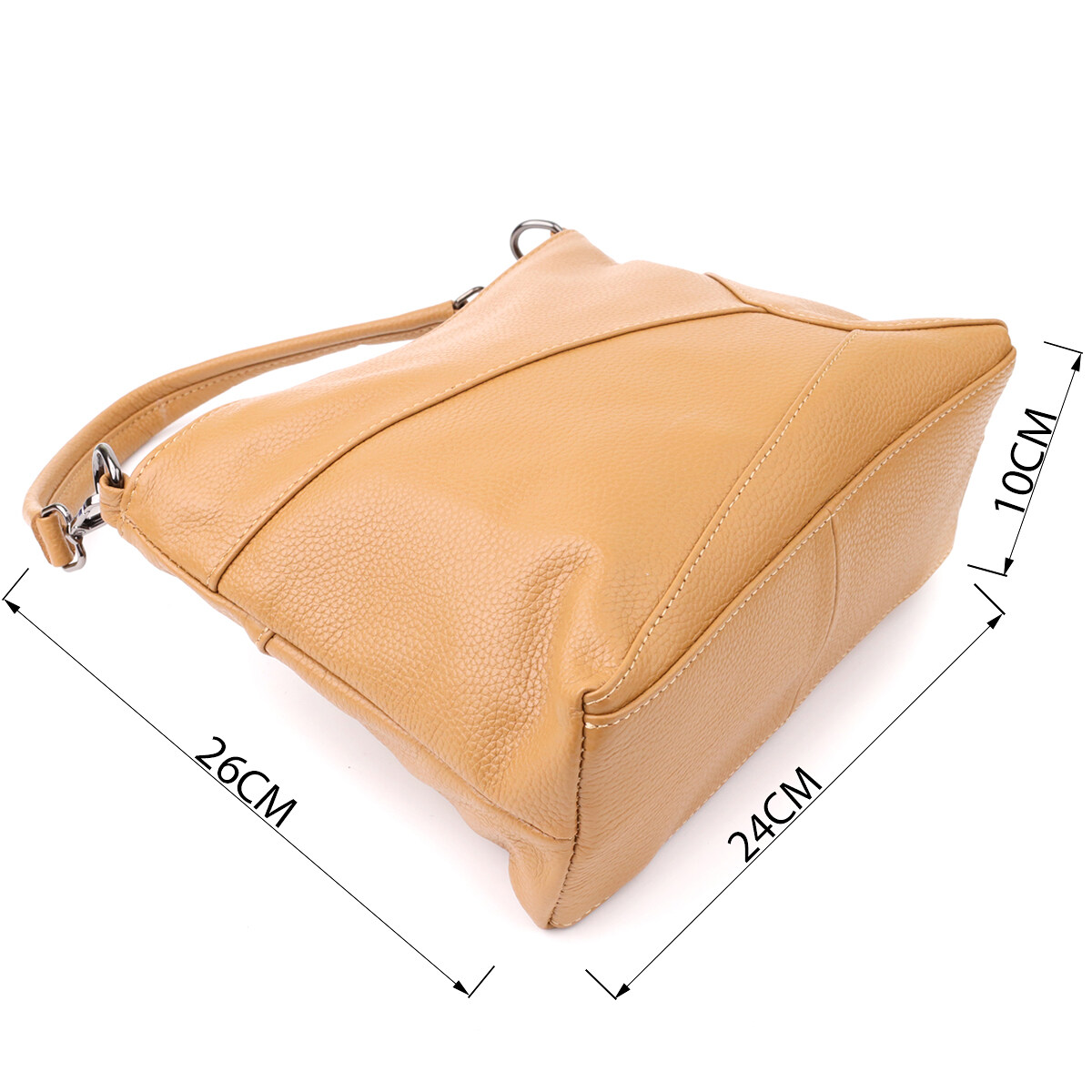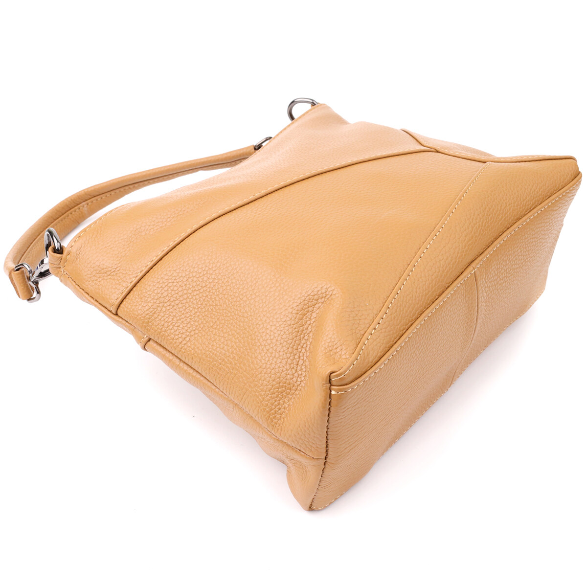 Універсальна сумка з натуральної шкіри у світло-коричневому кольорі – це гармонійне поєднання стильного дизайну, якості та практичності. Теплий відтінок шкіри надає моделі особливої м'якості та елегантності, роблячи її універсальним доповненням як до повсякденних, так і до ділових образів.