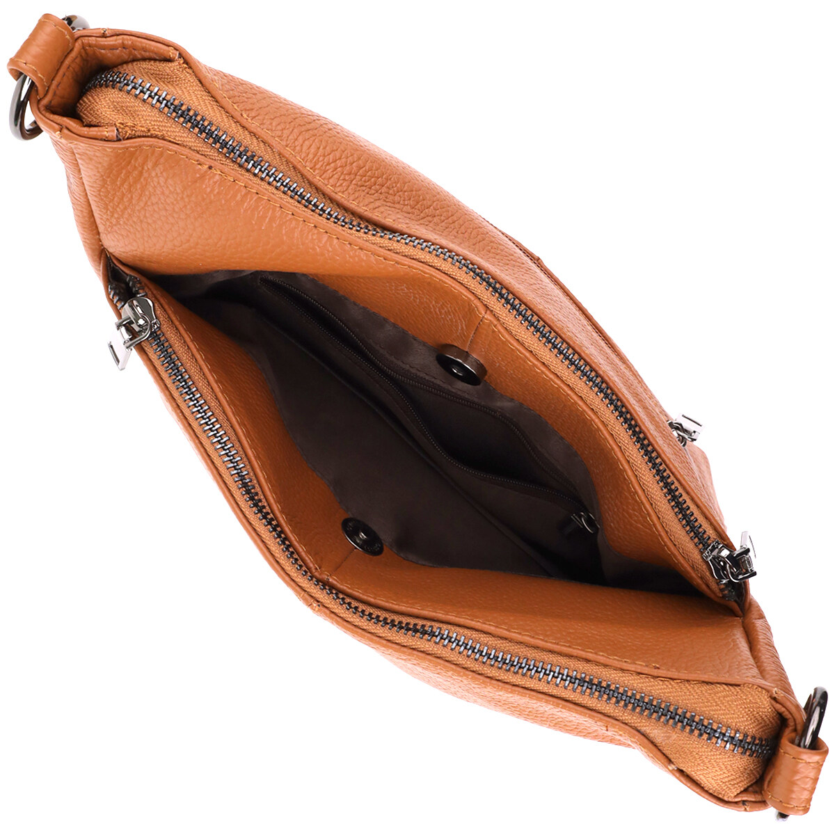 Коричнева шкіряна сумка з трьома відділеннями – це гармонійне поєднання стилю, практичності та якості, яке підкреслить ваш смак та підійде під будь-який гардероб.