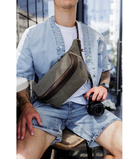 Сумка бананка для фотоапарата шкіра та канвас TARWA RCh-1313-4lx