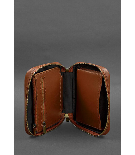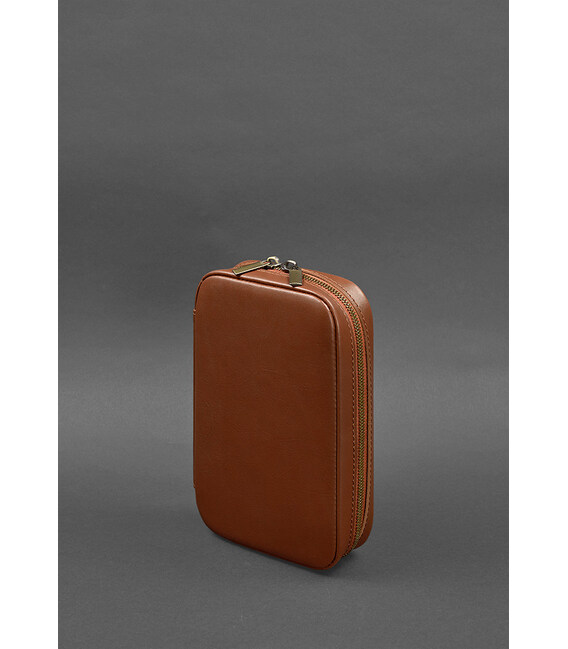 Детальніше Шкіряний дорожній органайзер для проводів, косметичка-несесер 7.0 світло-коричневий краст