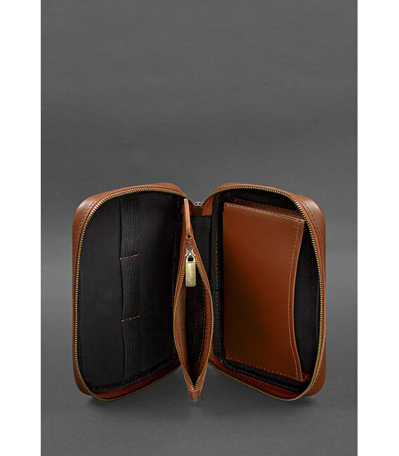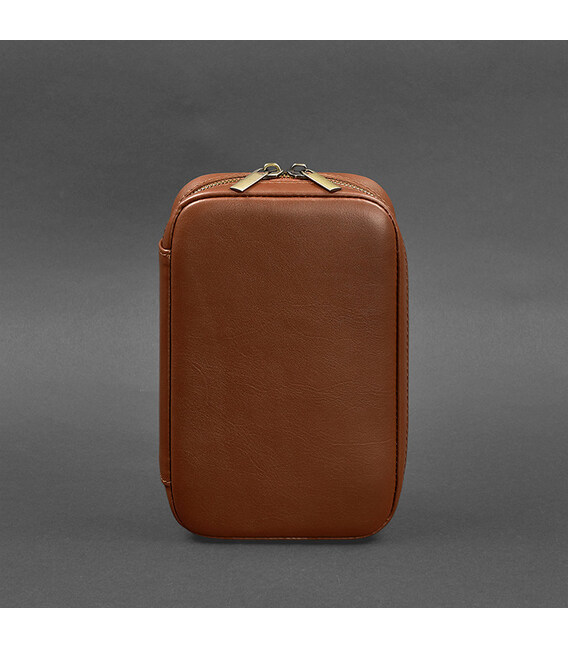 Шкіряний дорожній органайзер для проводів, косметичка-несесер 7.0 світло-коричневий краст