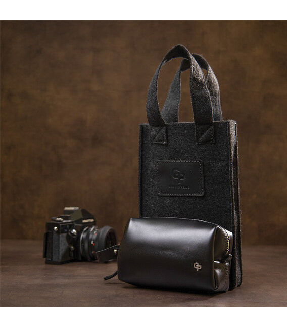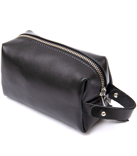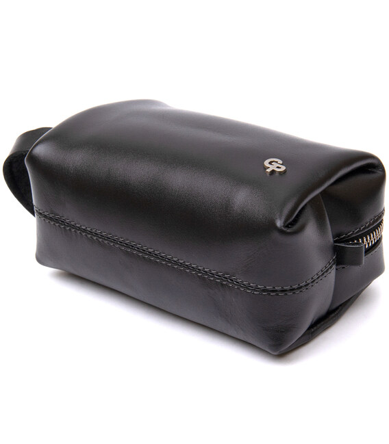 Шкіряна глянсова чоловіча косметичка GRANDE PELLE 11413 Чорний