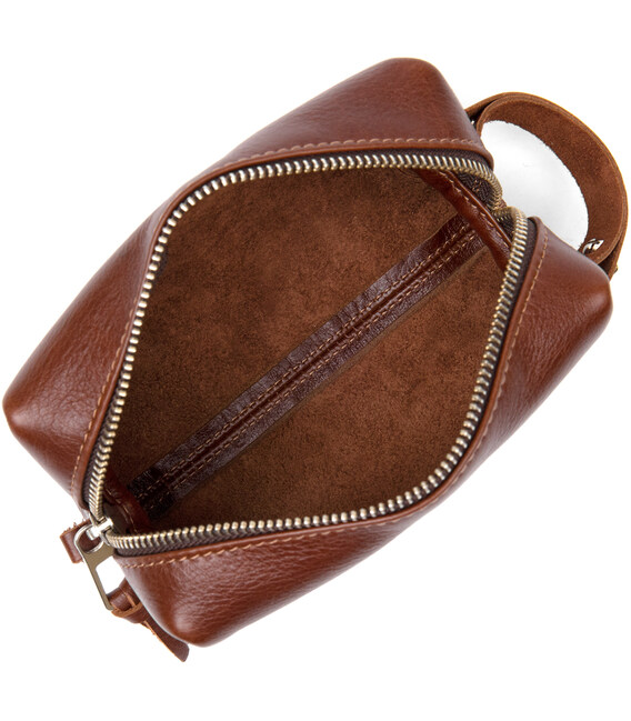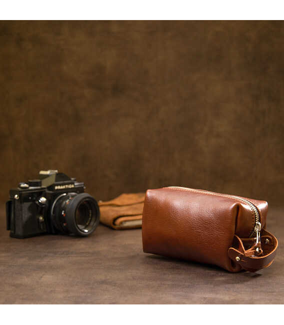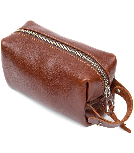 Цікаве рішення для поїздок, адже так часто необхідно взяти з собою невеликі особисті приналежності. Дана косметичка чудово впорається з поставленим завданням, вона виконана з натуральної міцної шкіри і має надійну металеву блискавку. Шляхетний коричневий колір надає їй особливого шарму. Упакована косметичка в фірмовий чохол-сумку.