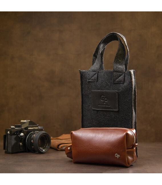 Чоловіча косметичка з натуральної шкіри GRANDE PELLE 11414 Коричневий