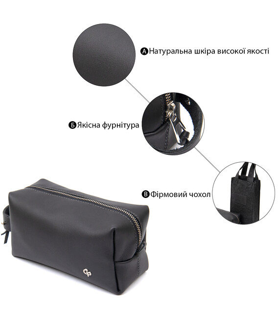 Матовий чоловічий шкіряний несесер GRANDE PELLE 11509 Чорний