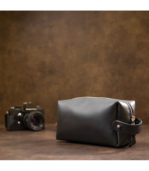 Елегантна чоловіча косметичка з висококласної натуральної шкіри для зберігання найважливіших речей, які повинні бути при собі. Фактура виробу матова гладка, що виглядає красиво і багато. Такий несесер стане відмінним подарунком для коханого чоловіка або колеги по роботі. Упакований він в фірмовий чохол.