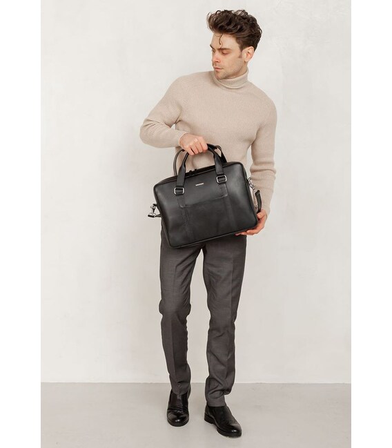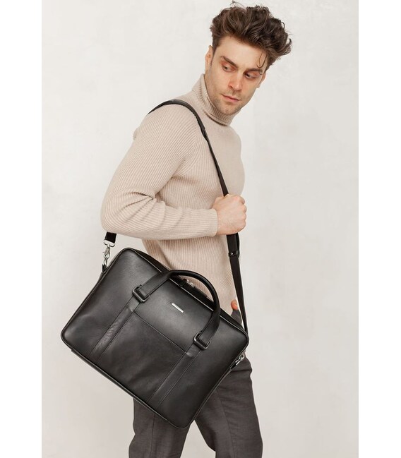 Завдяки чорному кольору і лаконічному дизайну сумка підійде як чоловікам, так і жінкам. Шкіряна сумка для ноутбука підкреслить статус і стиль володаря.