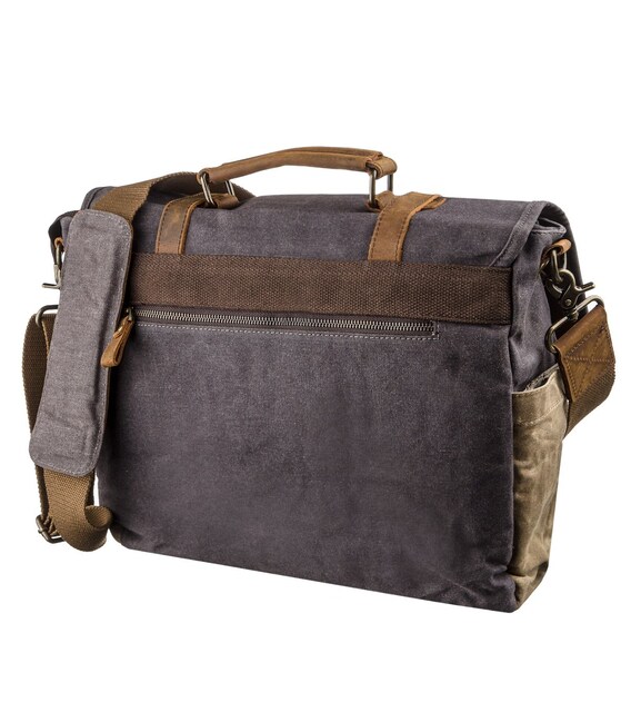 Містка ділова сумка з вінтажним дизайном. Сумка виготовлена з вощеної парусини в поєднанні з натуральною вінтажною шкірою. В виріб легко поміститься ноутбук діагоналлю 15.6 дюймів. Модель дуже міцна. Модель має безліч зручних кишень і прекрасно підійде для повсякденного життя. Сумка поєднується з будь-яким вашим стилем. Така сумка стане хорошим і доступним подарунком для будь-якого чоловіка.
