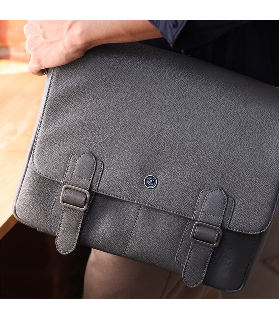Детальніше Шкіряна сумка месенджер для ноутбука 14 Brampton London Emissary Grey (Сірий)