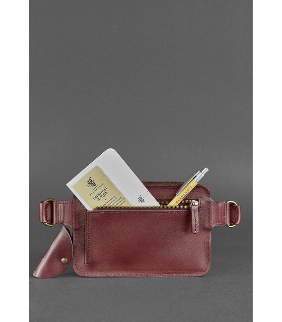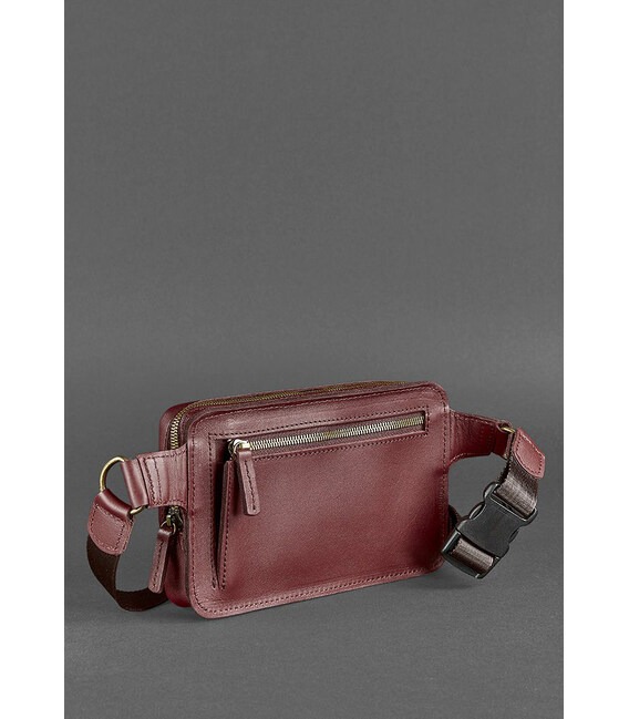 Виготовлена сумочка з натуральної шкіри Krast бордового кольору. Цей вид шкіри дуже подобається нашим покупцям, так як він має високу міцність і зносостійкість. А для такої моделі це важливі показники. Так як ми впевнені, що ця поясна сумка точно стане Вашою улюбленицею! Вона буде супроводжувати Вас на прогулянках, під час подорожей і навіть на пробіжці. Вам всюди захочеться брати її з собою. Це ж так зручно, коли всі дрібні, але такі потрібні, речі поруч, але при цьому руки абсолютно вільні.