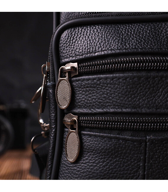 Чоловіча сумка на пояс із натуральної шкіри 21481 Vintage Чорна