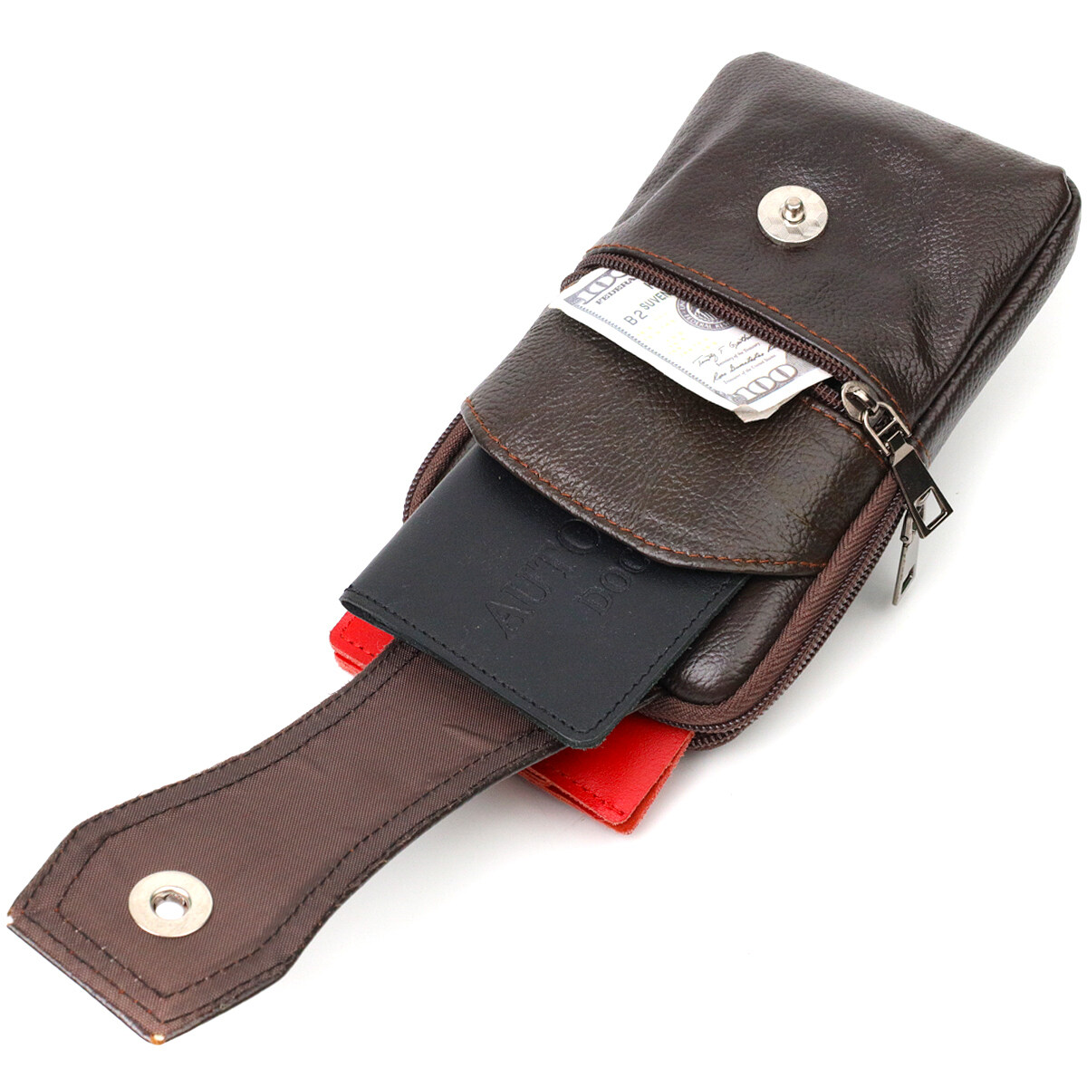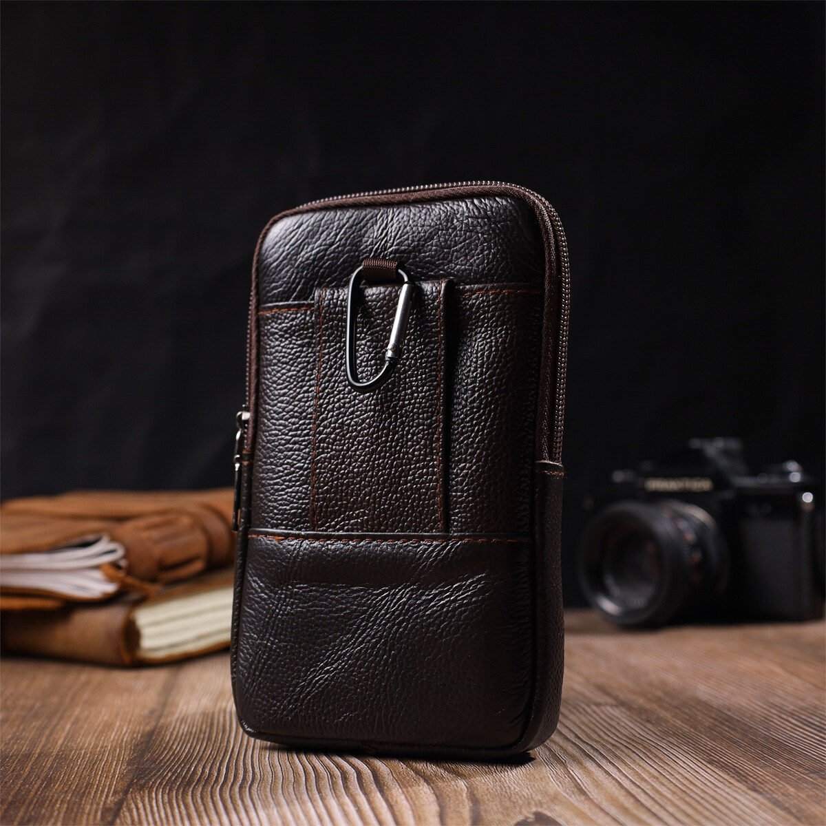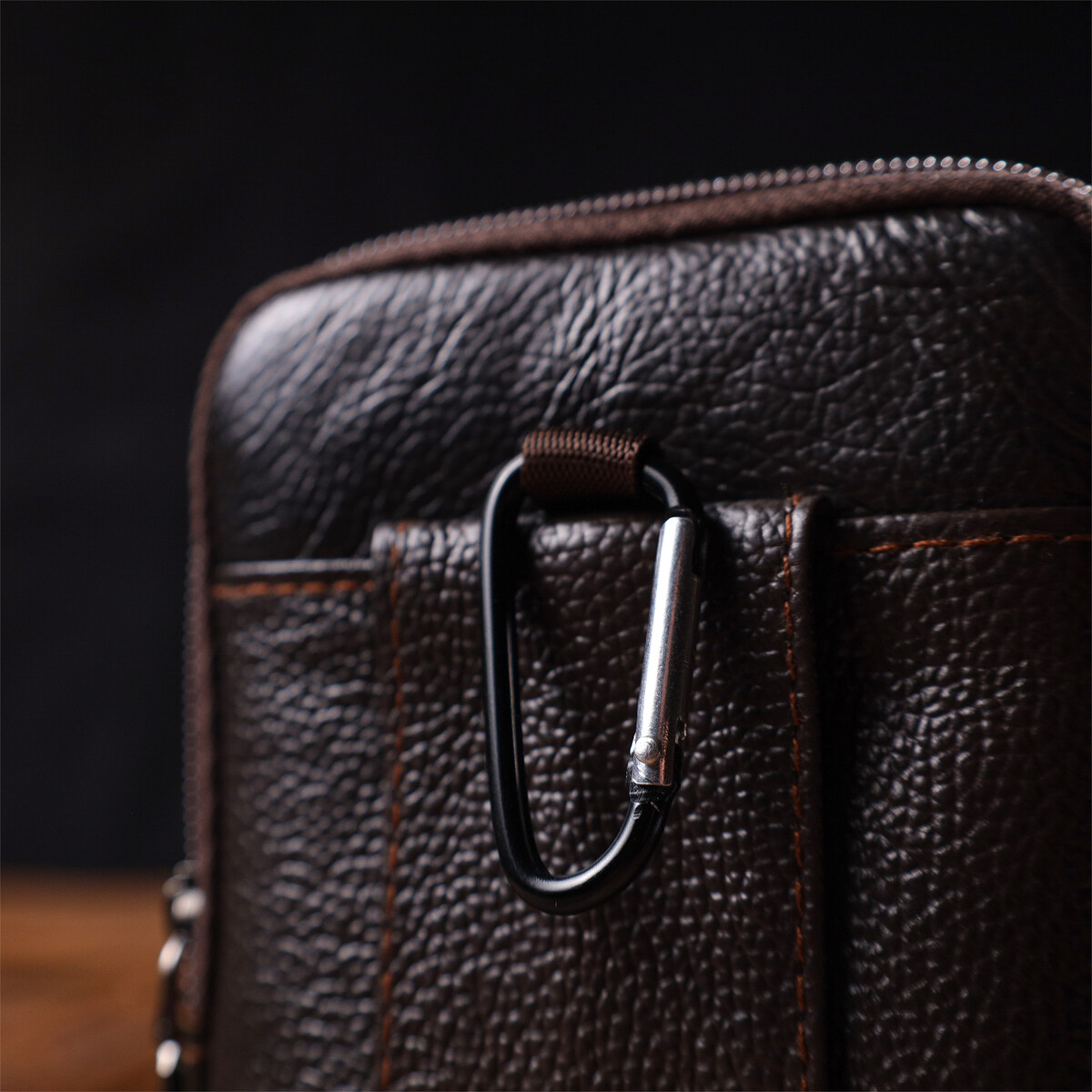 Практична сумка із натуральної м'якої шкіри. Модель має дуже зручний функціонал - основне відділення на блискавці, накладну кишеню під хлястиком на магнітній кнопці та вбудовану кишеню на блискавці, на лицьовій стороні. Носити можна на поясі за допомогою петельки або підчепивши її за допомогою карабіну. Виріб має компактний розмір і підійде замість клатчу для найнеобхідніших речей. Ідеальний варіант для цінних речей у дорогу чи подорож.