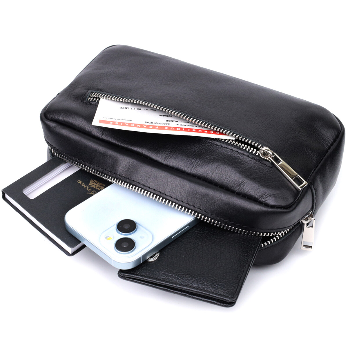 Чоловіча сумка з натуральної гладкої шкіри високої якості. Бананка – одна із найпопулярніших моделей серед наших клієнтів. Внутрішні відділення дозволяють зберігати невеликі предмети повсякденного використання в межах досяжності руки, такі як ключі, окуляри, мобільний телефон, візитниця, картхолдер та особисті речі. Тримайте свої цінні речі під рукою, зберігаючи модний вигляд. У сумці використана якісна фурнітура, ремінець закривається на фастекс. Такий аксесуар стане чудовим подарунком для близької людини.
