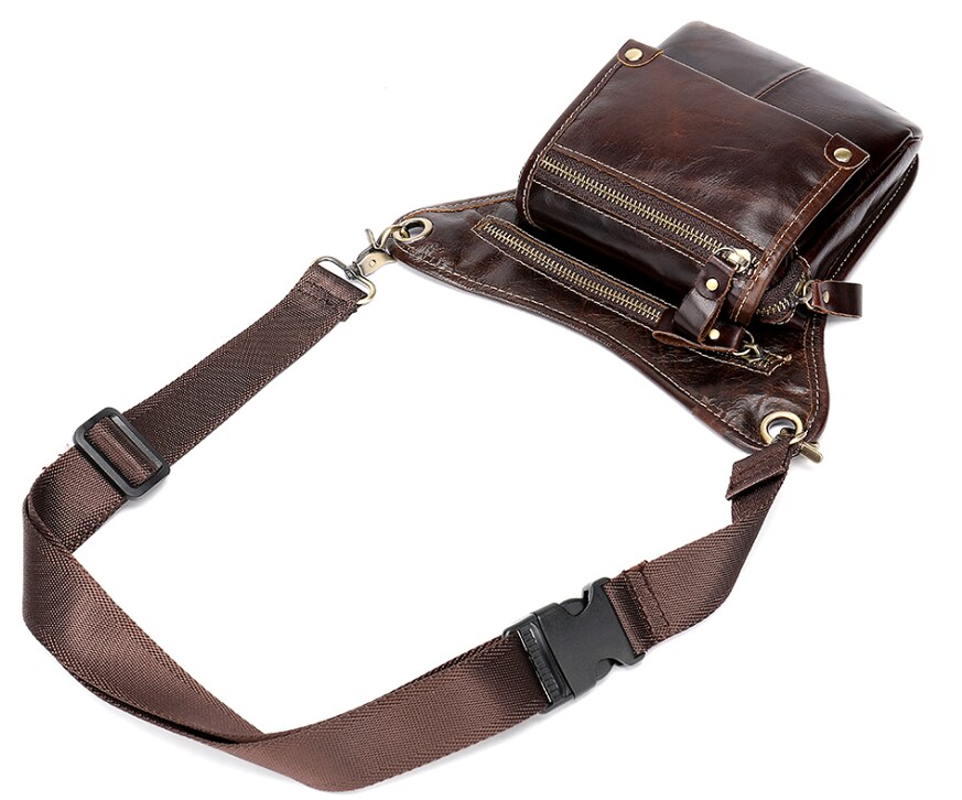 Компактна шкіряна сумка, яка з легкістю зможе замінити вам барсетку. Особливістю сумки є те, що ви можете носити її повісивши на свій ремінь або ногу. З такою сумочкою все буде у вас під рукою і перед очима. Сумка, яка кріпиться на пояс забезпечить безпеку всім вашим особистим речам і звільнить руки. Модель доповнена міцною металевою фурнітурою сріблястого кольору. Сумка буде знахідкою для водіїв, таксистів і чоловіків, які проводять багато часу за кермом. Аксесуар упакований в пилозахисний чохол.