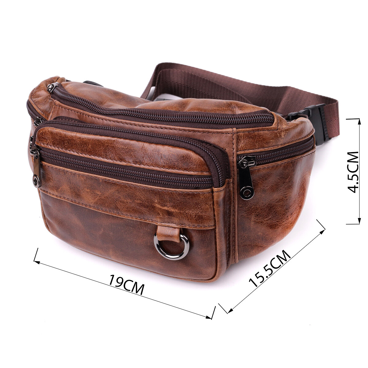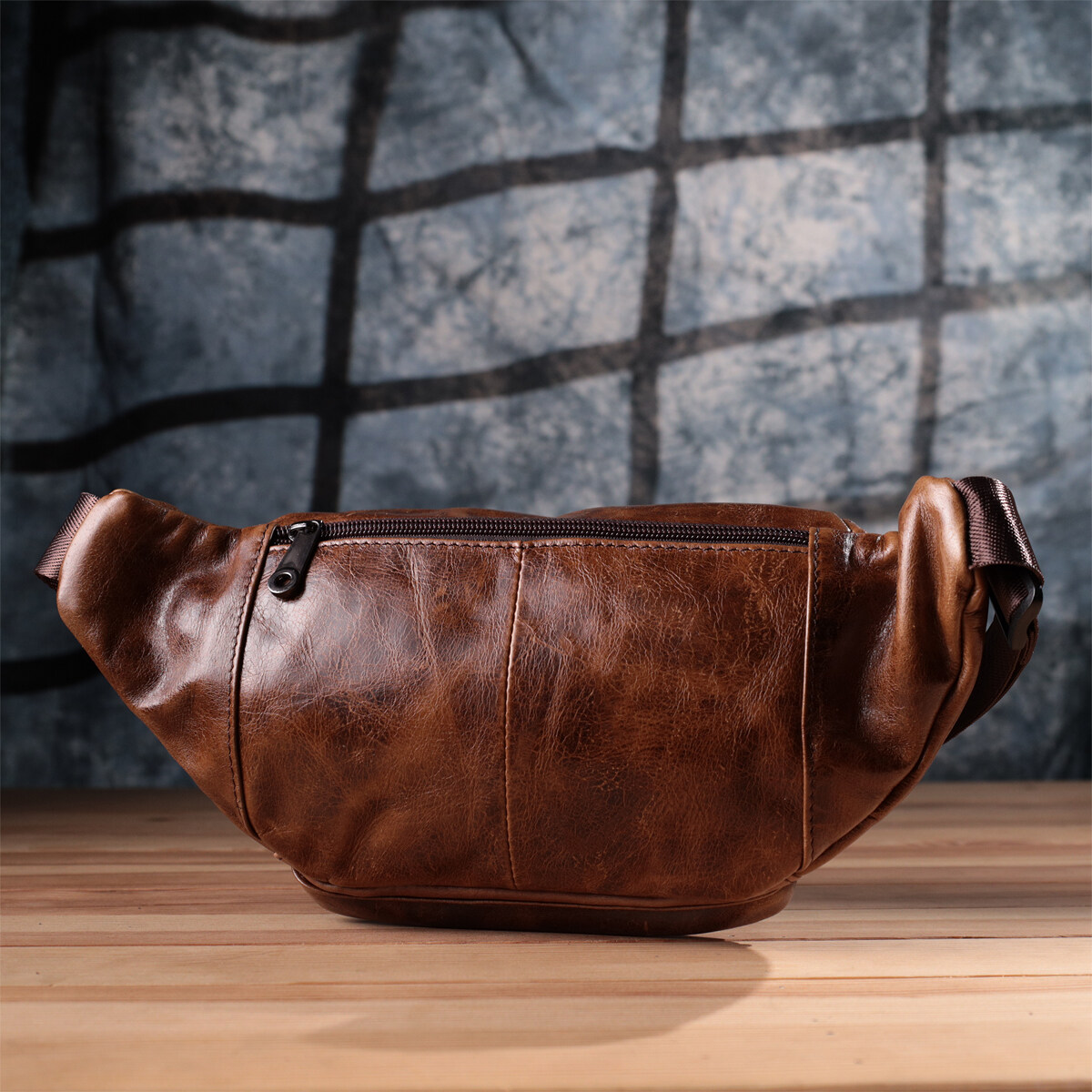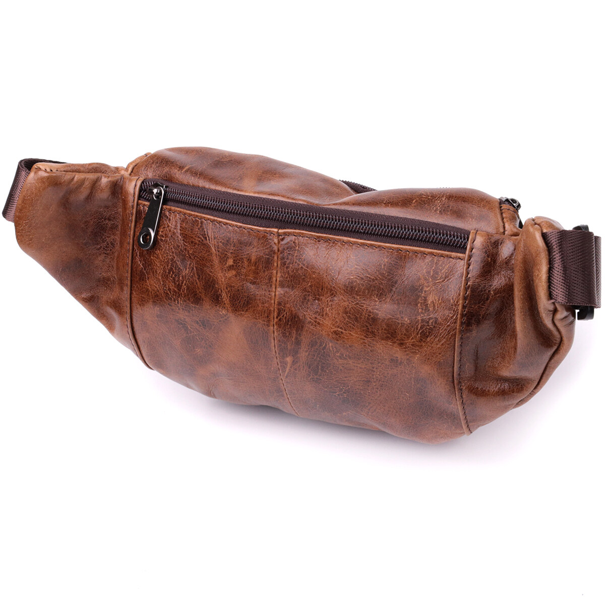 Красива чоловіча сумка на пояс із натуральної шкіри високої якості. Має просторе основне відділення та п'ять зовнішніх кишень різного розміру, що дуже зручно та практично. Ремінь виконаний із міцного текстилю. Така сумка стане гарним подарунком для близької людини.