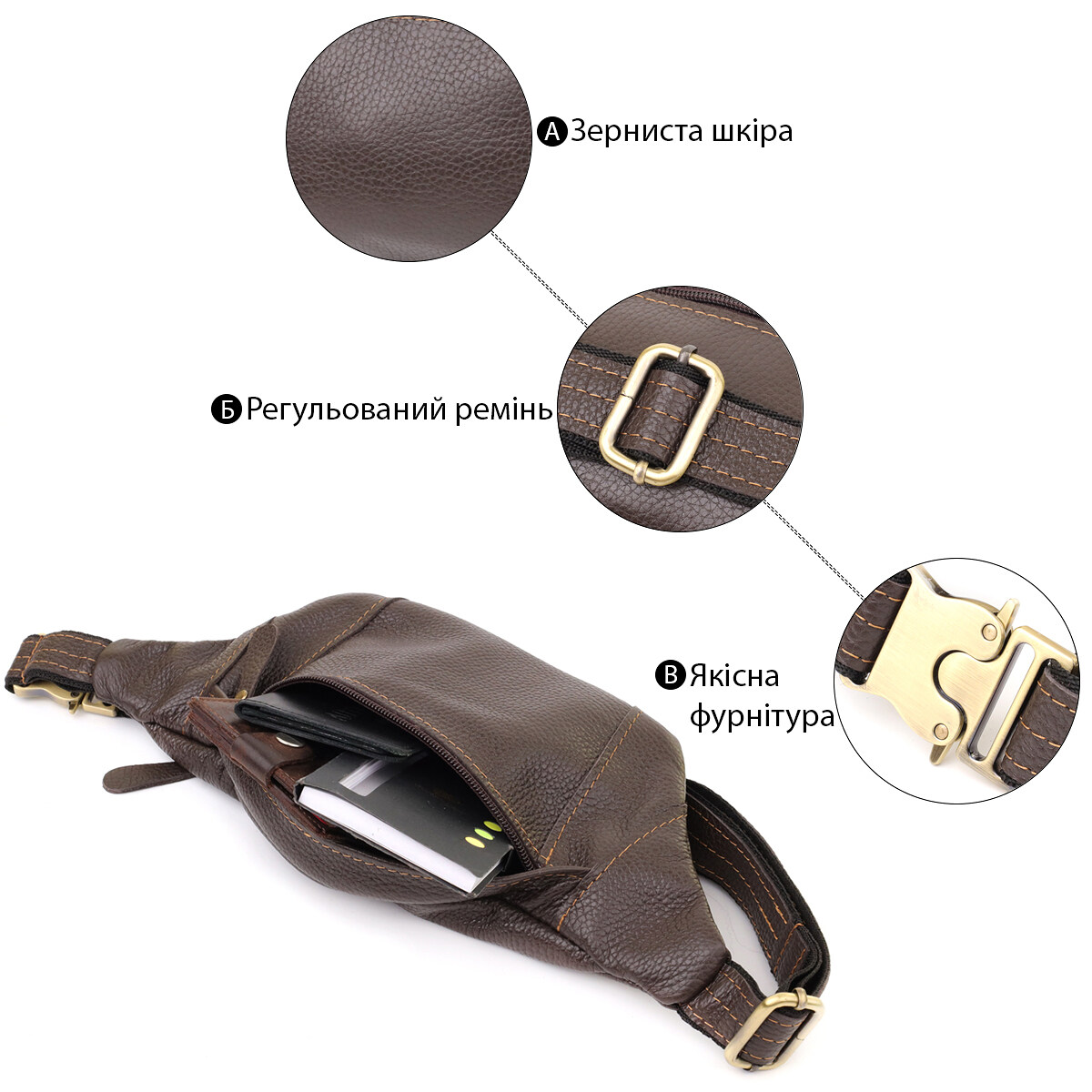 Сумка-бананка в коричневій шкірі флотар - це не просто аксесуар, а відображення смаку, практичності та впевненого стилю.