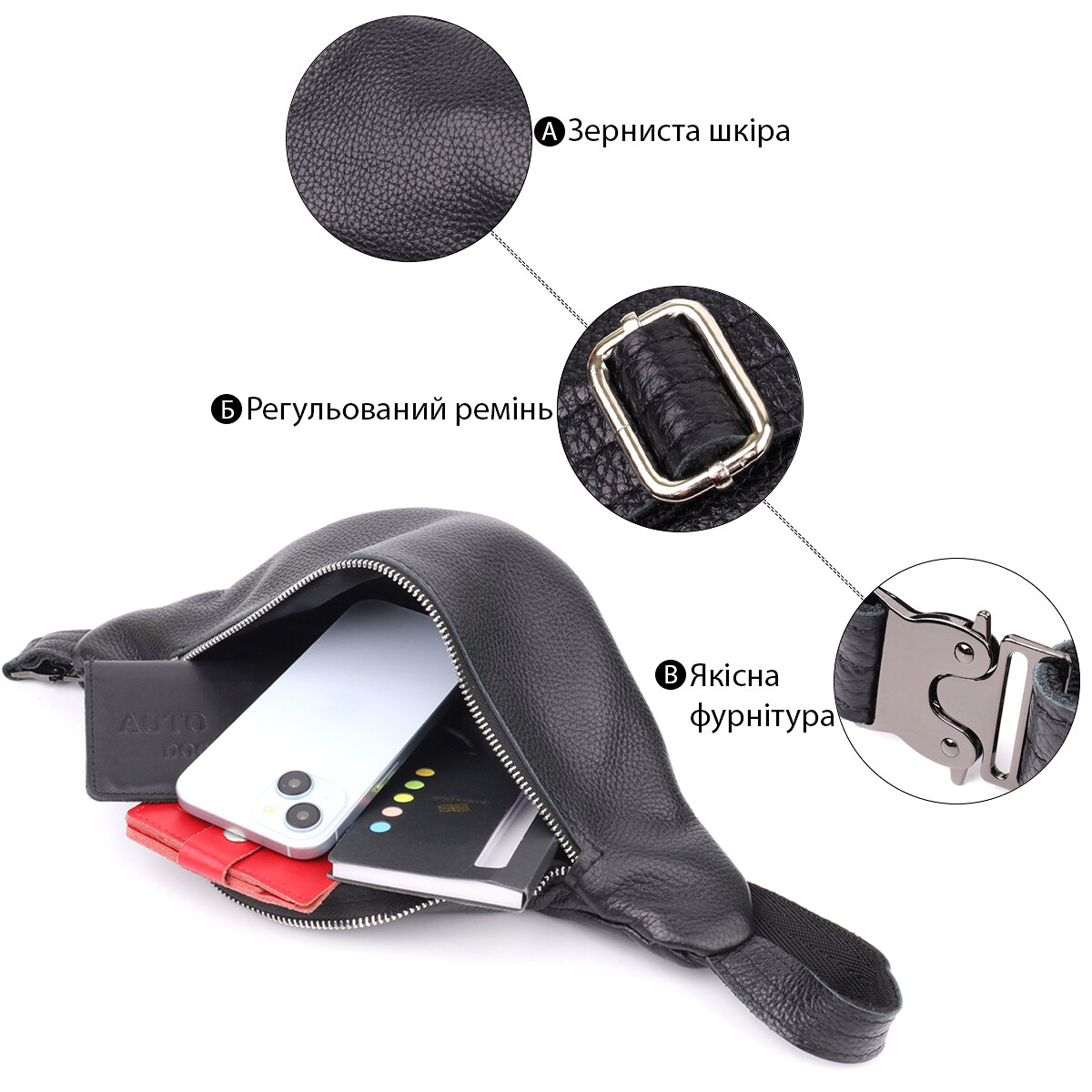 Сумка-бананка в чорній шкірі флотар - це не просто аксесуар, а відображення смаку, практичності та впевненого стилю.