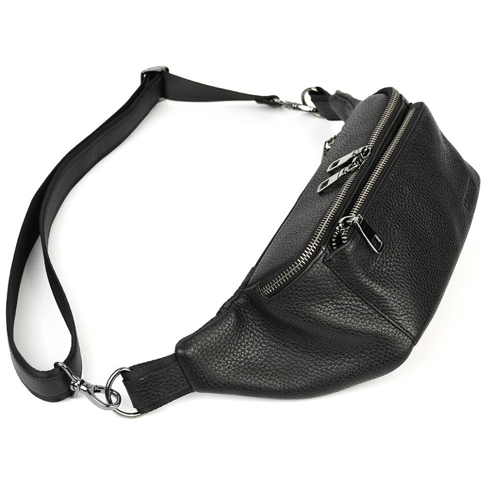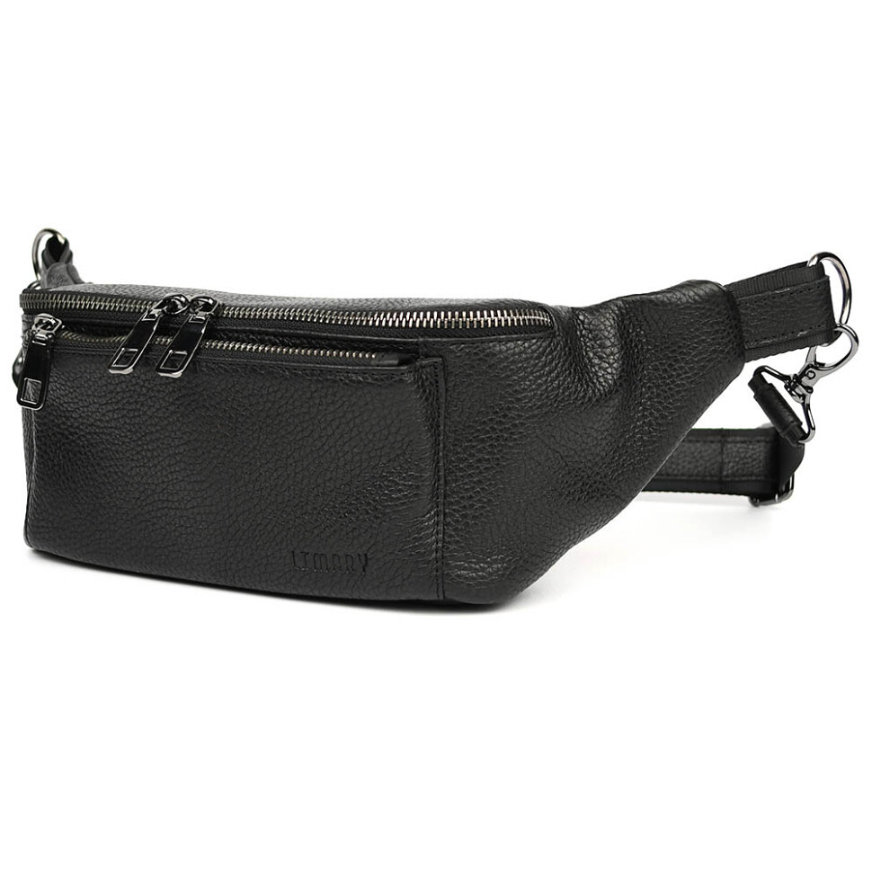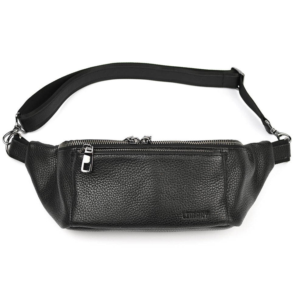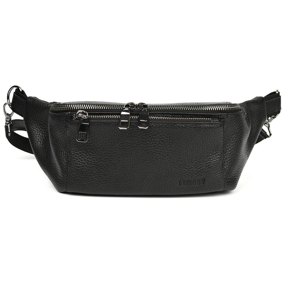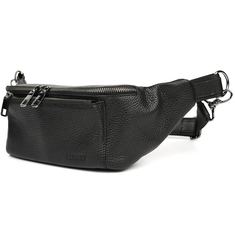 Шкіряна бананка напоясна сумка Limary Lim-233FA чорний флотар