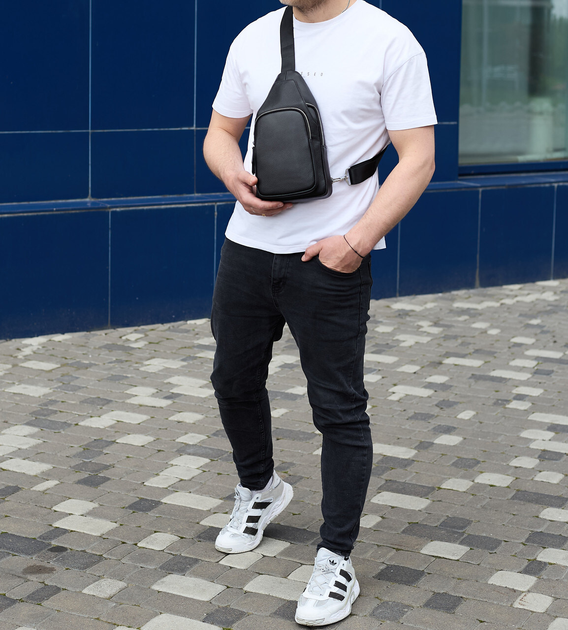 Чоловіча сумка-слінг із натуральної шкіри, сумка через плече чорна, чоловіча сумка слінг Tiding Bag 34091