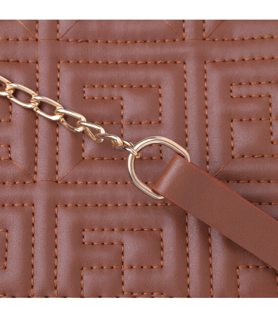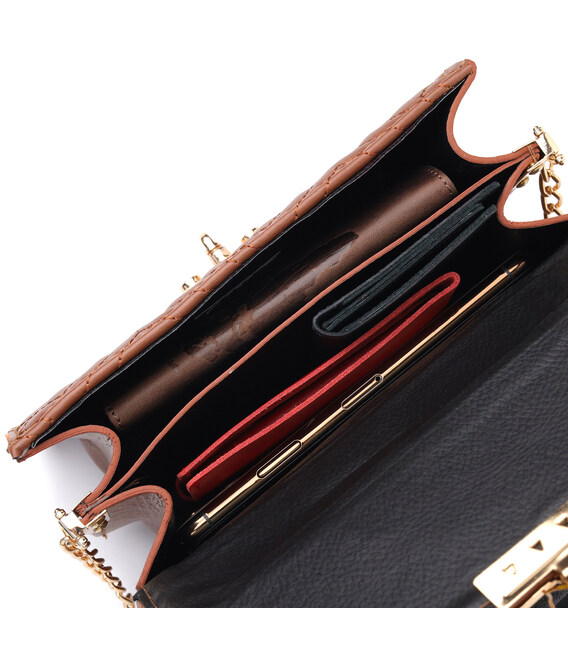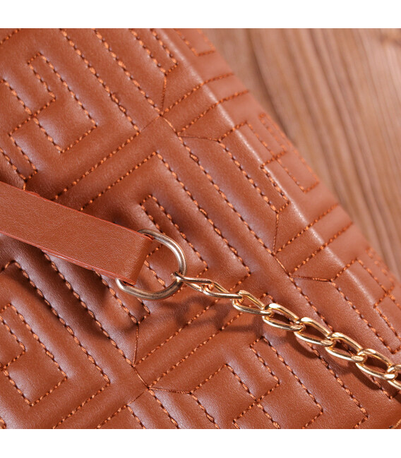 Відмінна маленька сумка коричневого кольору з якісної стьобаної екошкіри, з надійною механічною пряжкою, золотого кольору. Сумка має невеликий розмір, стильний дизайн. У виробі використано якісну фурнітуру. Модель має жорсткий каркас, що не дозволить їй деформуватися під час носіння довгий час, таку сумку приємно носити. Може бути чудовим варіантом для подарунка стильній жінці.