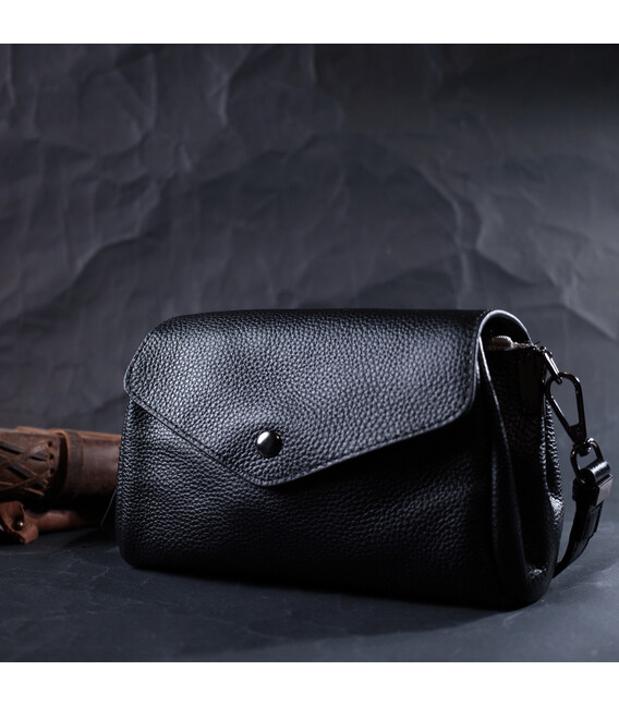 Детальніше Жіноча шкіряна сумка із трикутним клапаном Vintage 22254 Чорна