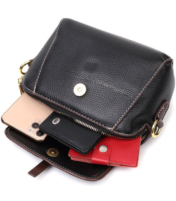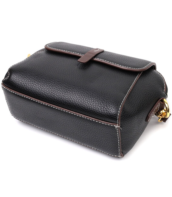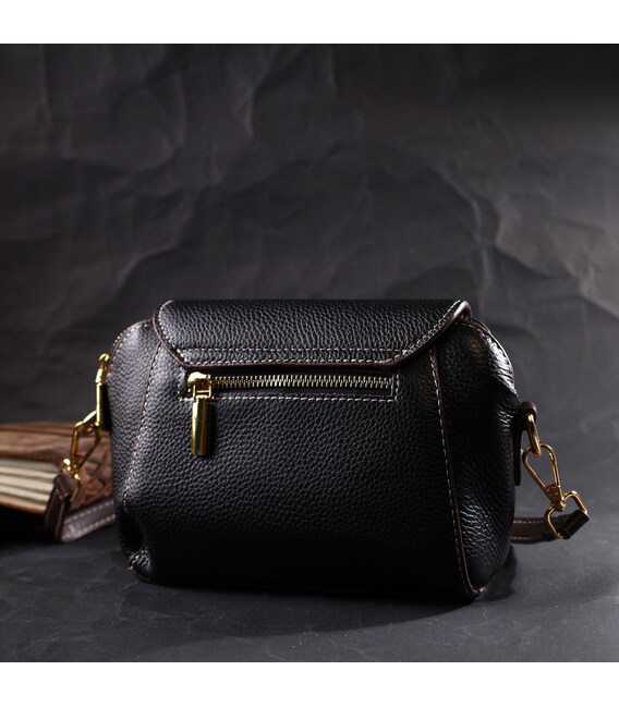 Компактна жіноча сумка з натуральної шкіри Vintage 22265 Чорна