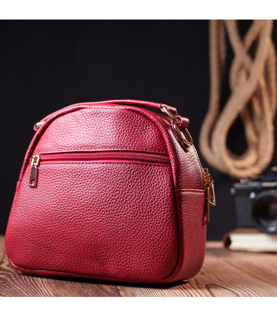 Відмінна жіноча сумка компактного розміру з натуральної шкіри. Виріб дуже зручний. Чудовий варіант невеликої сумки на кожен день. Модель доповнена фурнітурою золотого кольору. Шкіра м'яка і приємна на дотик. Сумка чудово виносить негоду. Всередині аксесуара міцна підкладка. У сумку з легкістю помістяться всі необхідні речі. З такою сумкою зручно ходити на роботу або зустрічі. Сумка стане чудовим подарунком для будь-якої жінки.
